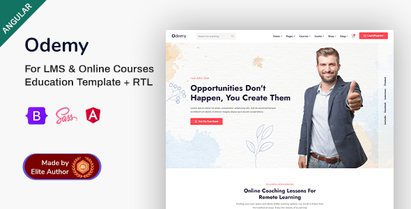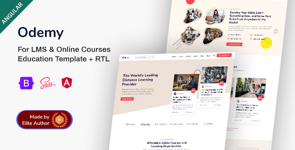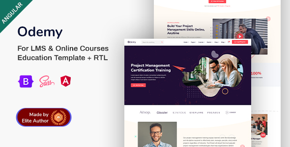 Odemy is a Modern Angular template purposely designed and built for Online Training and Education initiatives! It suits educational institutes, online course providers, online training, learning management, etc., websites. The template is created with Angular, Bootstrap, and Sass.