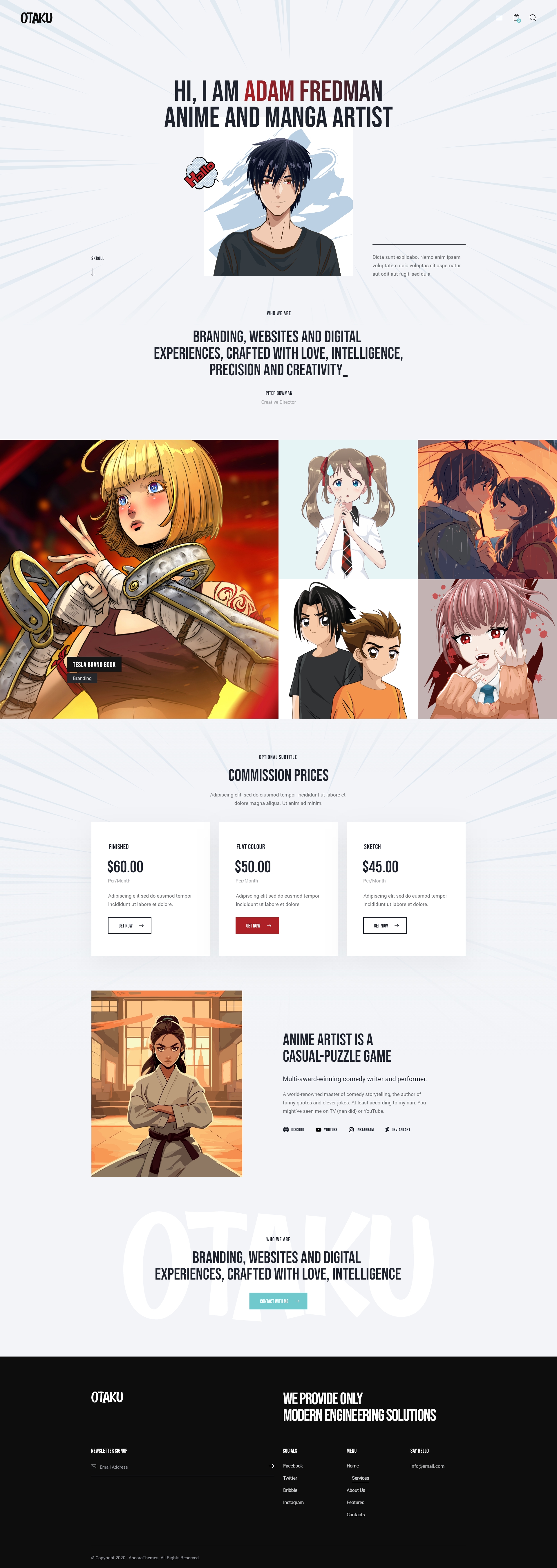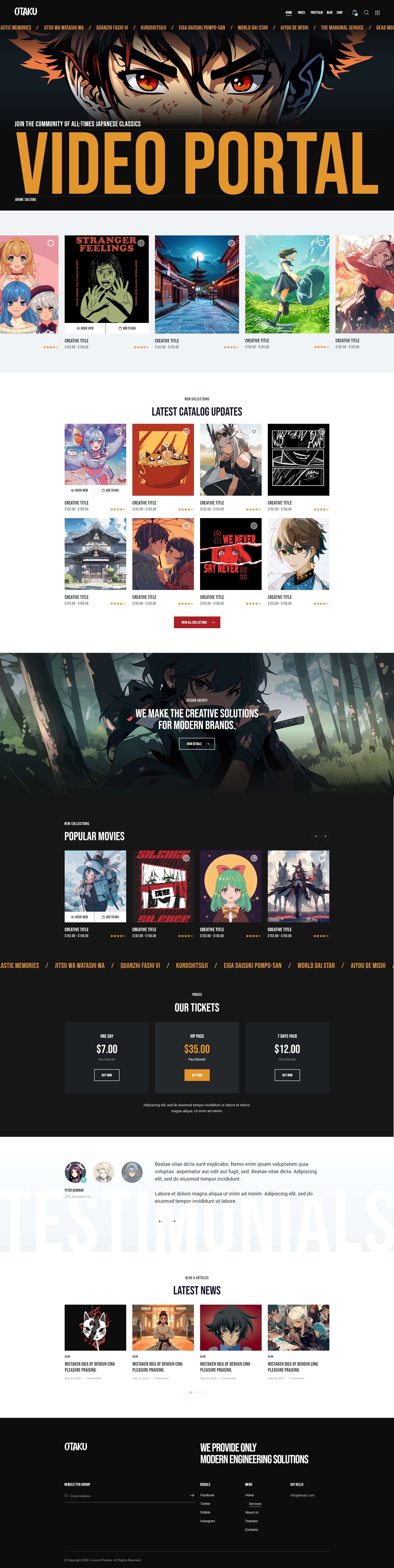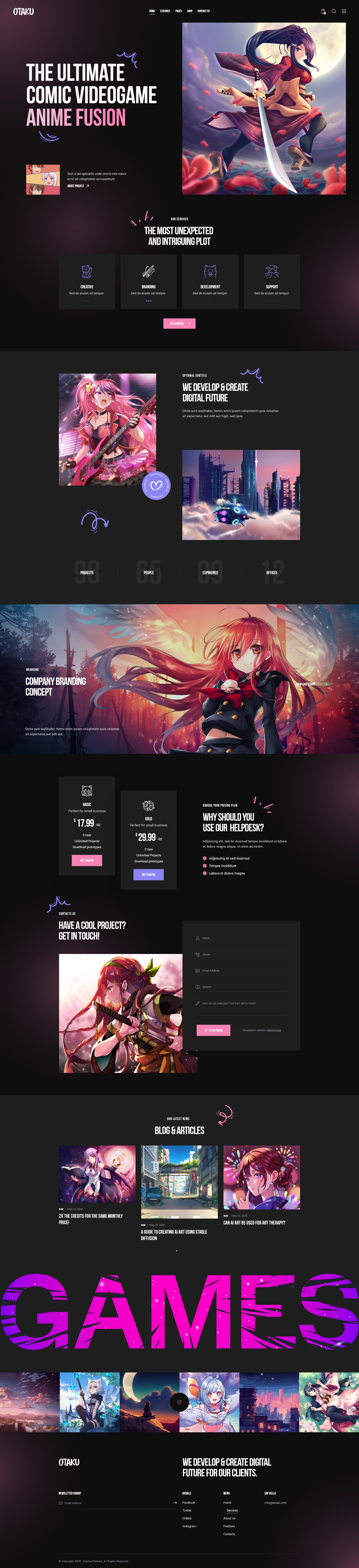 Otaku is a vibrant and cool WordPress theme created for websites related to comics, anime, manga, cosplay, k-pop, cosplay events. This theme can be also used as future video aggregator, artist portfolio, blog, art galley, art gallery, video games shop or an online store of cosplay clothing