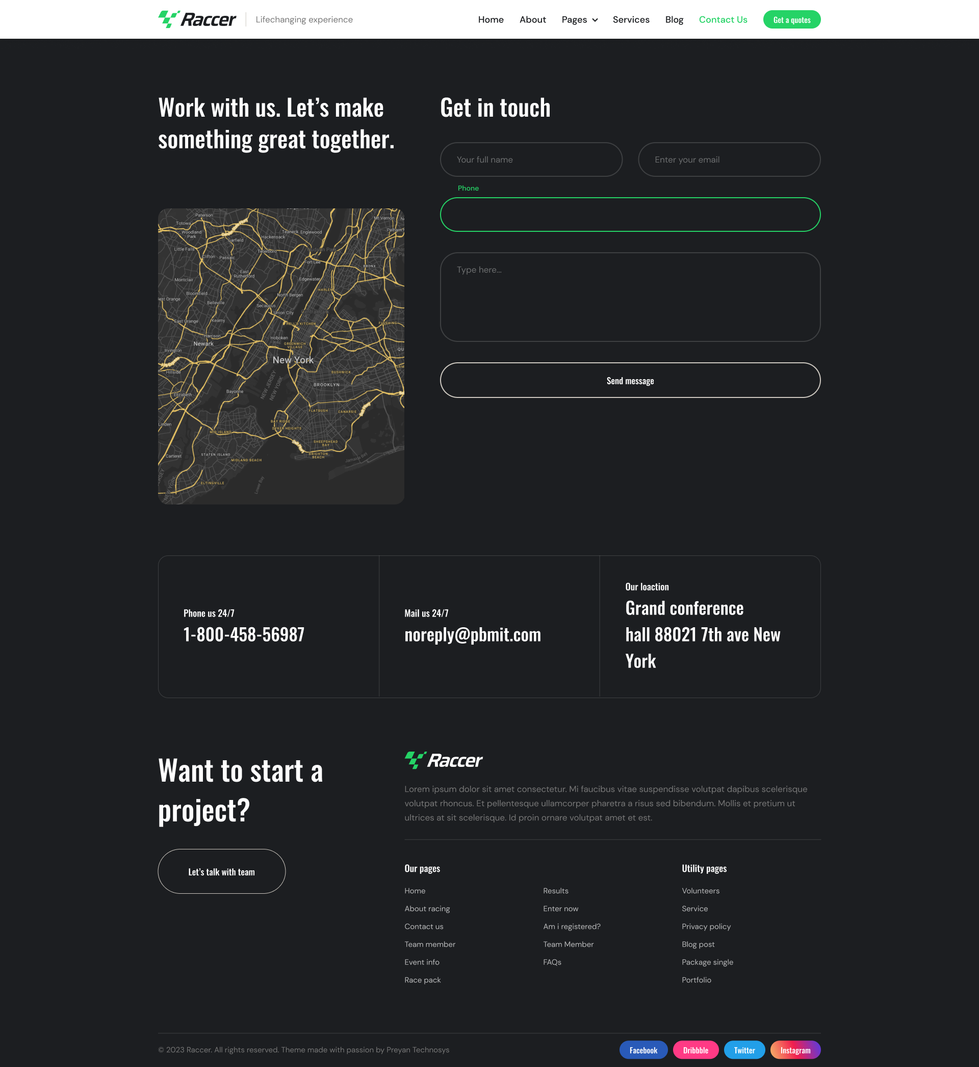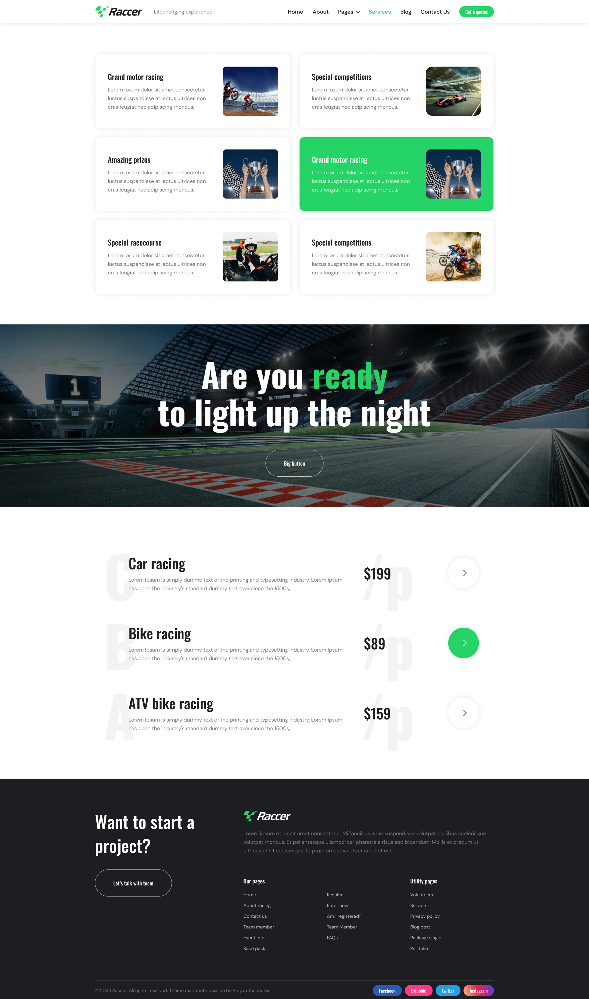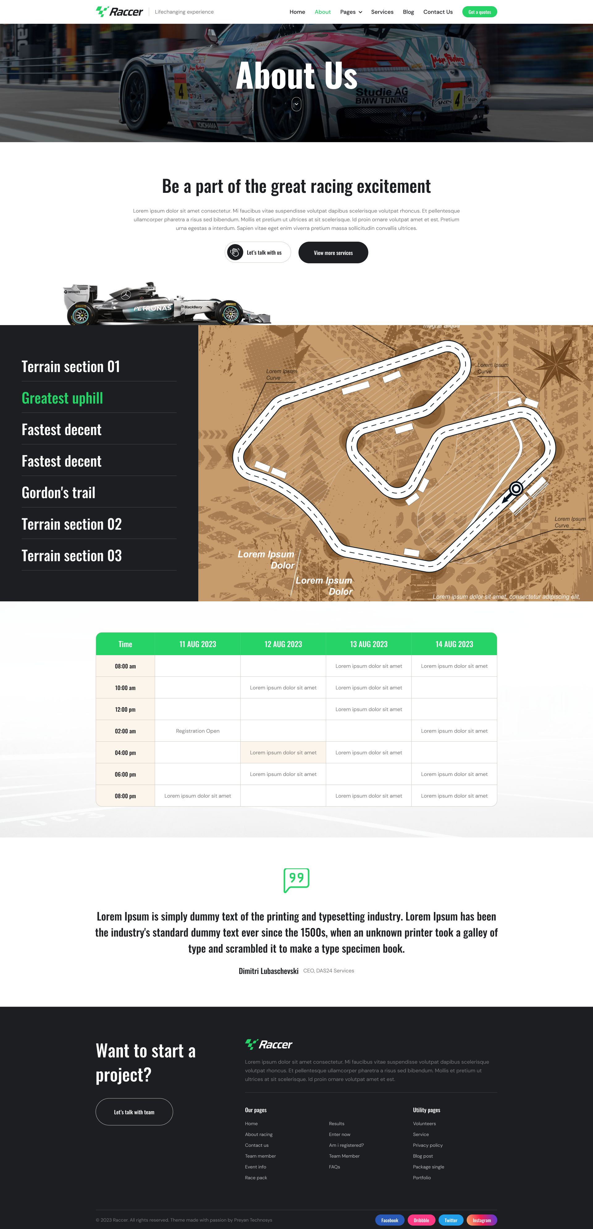 Raccer is a modern & colorful sports events Figma template designed for all kinds of sports events for moto & bike races, competition, race, marathon, eliminator, short track, training, championship, supermoto, downhill events websites.