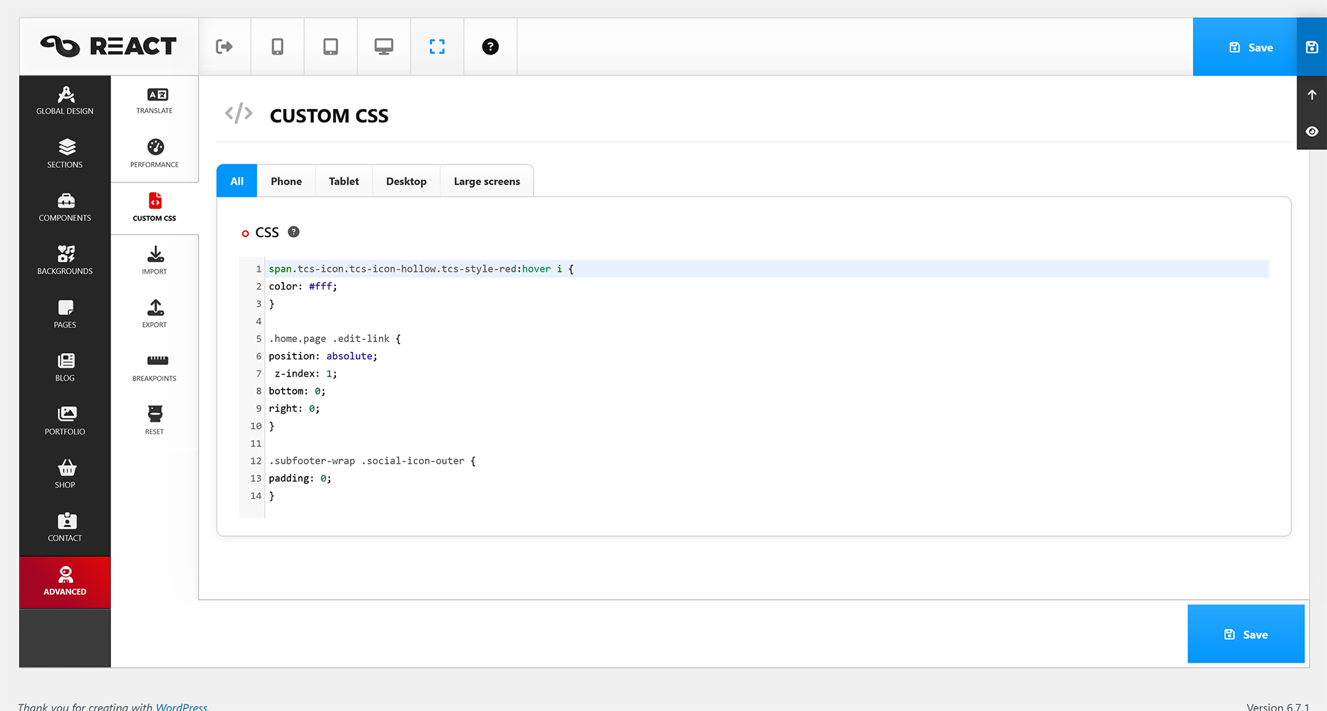 Designing with one of the most comprehensive Options Panel available for WordPress means you shouldn’t have to touch any code to get great results. However, if you need some further tweaks or additions to the theme code, you can find some handy features in the advanced section of the Options Panel to add and run JavaScript or target custom CSS to any device size.
