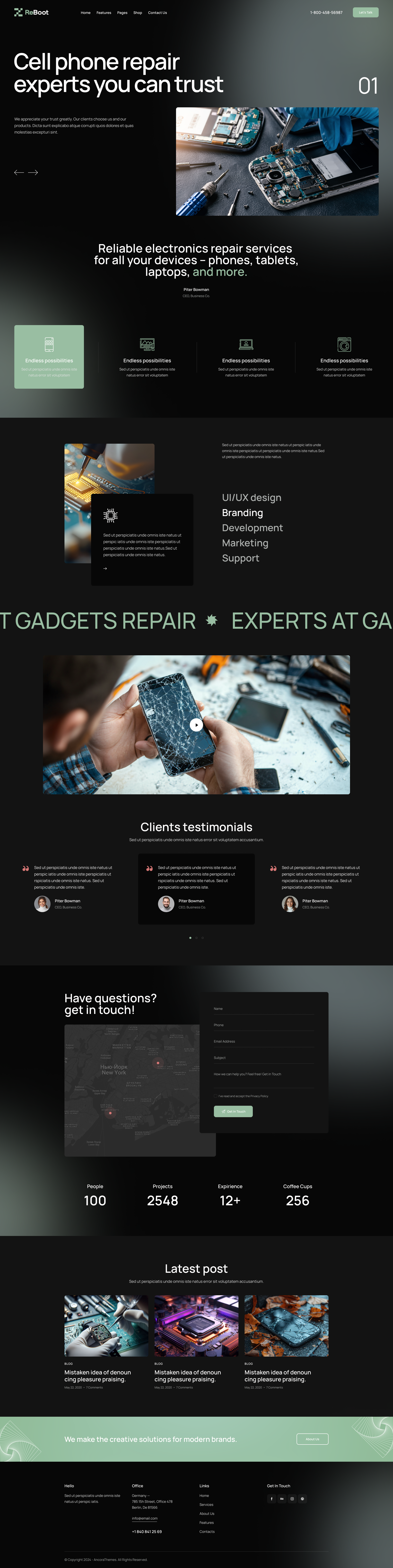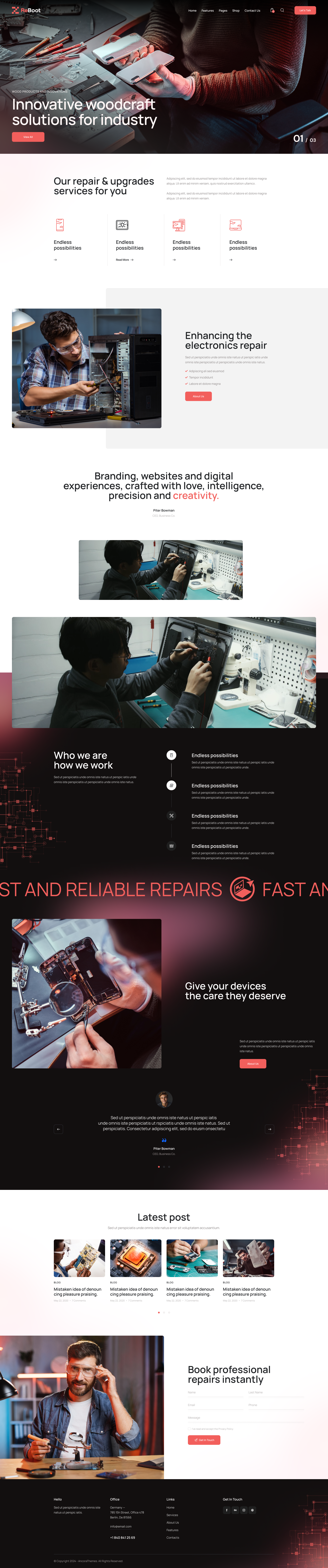 Reboot is a powerful, modern, and flexible Electronics Shot & Device Repair WordPress Theme. If you own an electronics repair shop, or an electronics maintenance & gadget service company and looking for a great option to present your business online, then Reboot is certainly a good deal. It has an excellent quality and fair price. With this convincing premium design, internet surfers will definitely be willing to get their smartphones, computers, and tablets (and even game consoles) repaired at your shop.