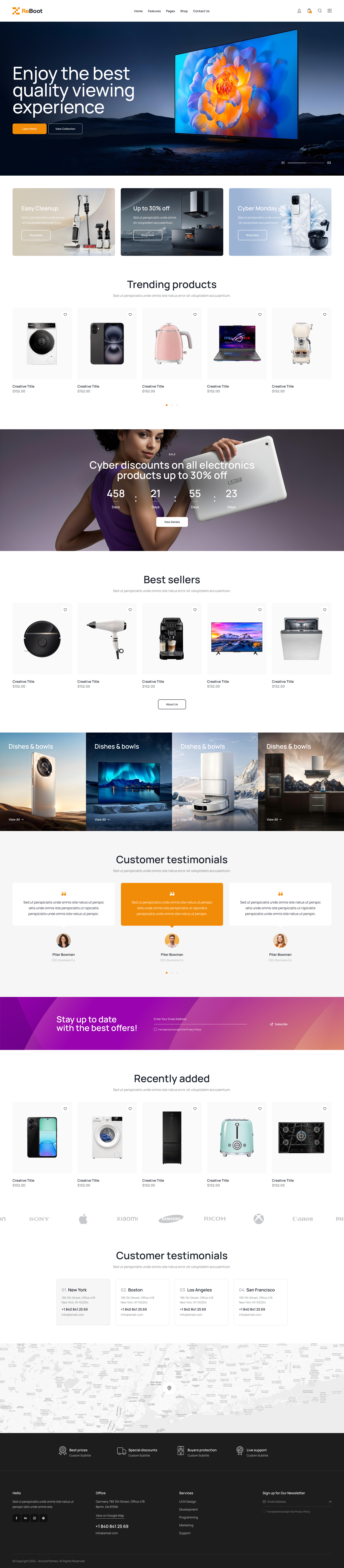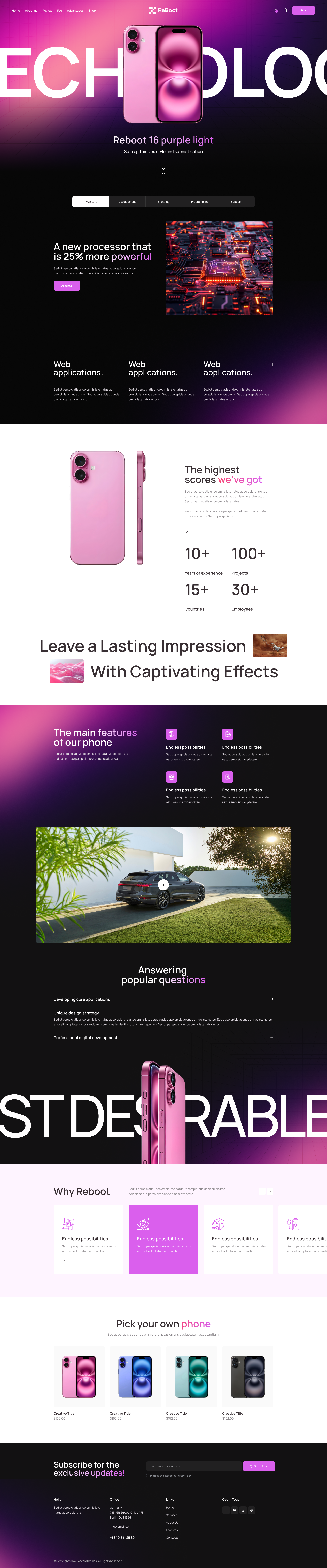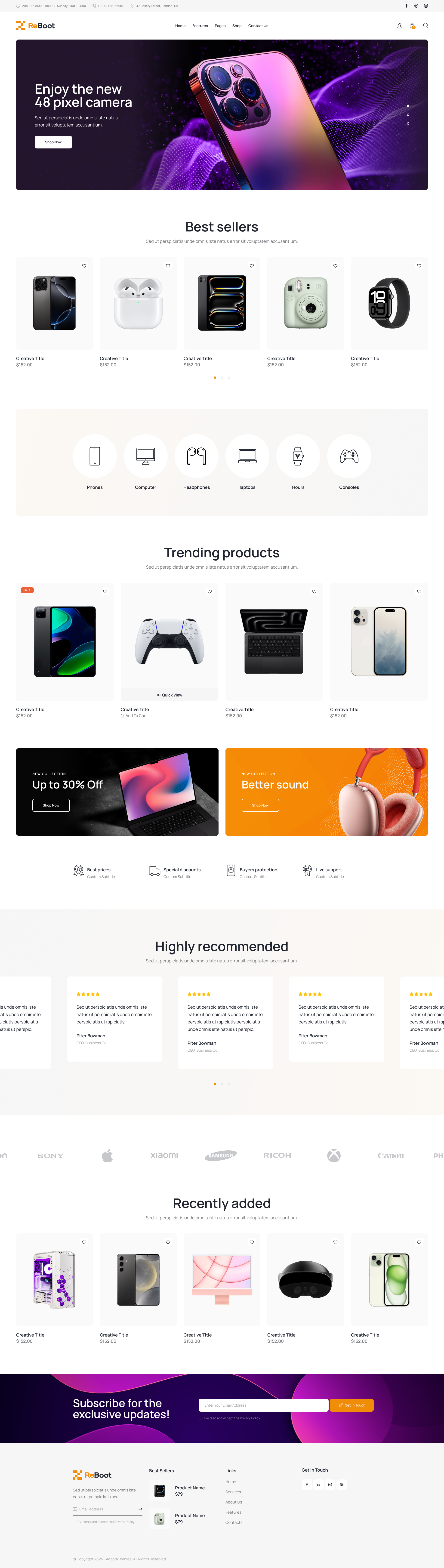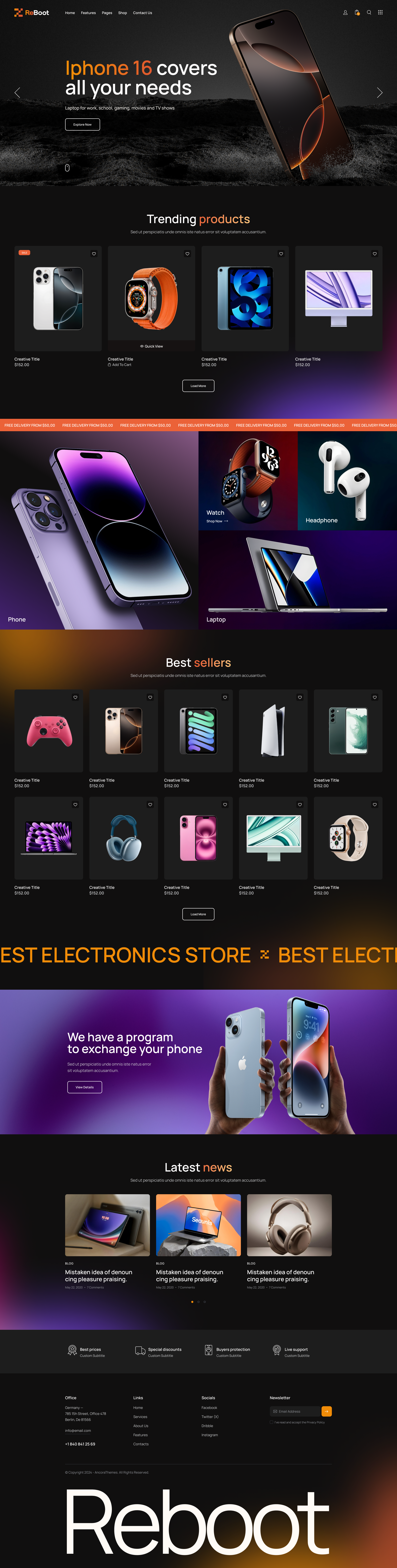 The Reboot WP template is made with Elementro abd is compatible with Elementor Pro. With Slider Revolution the visual look of you website will be definitely outstanding. Using Mailchimp you can get your email list and perform newletters for your customers. Above all ThemeREX Addons plugins will ensure your experience is absolutely smooth.