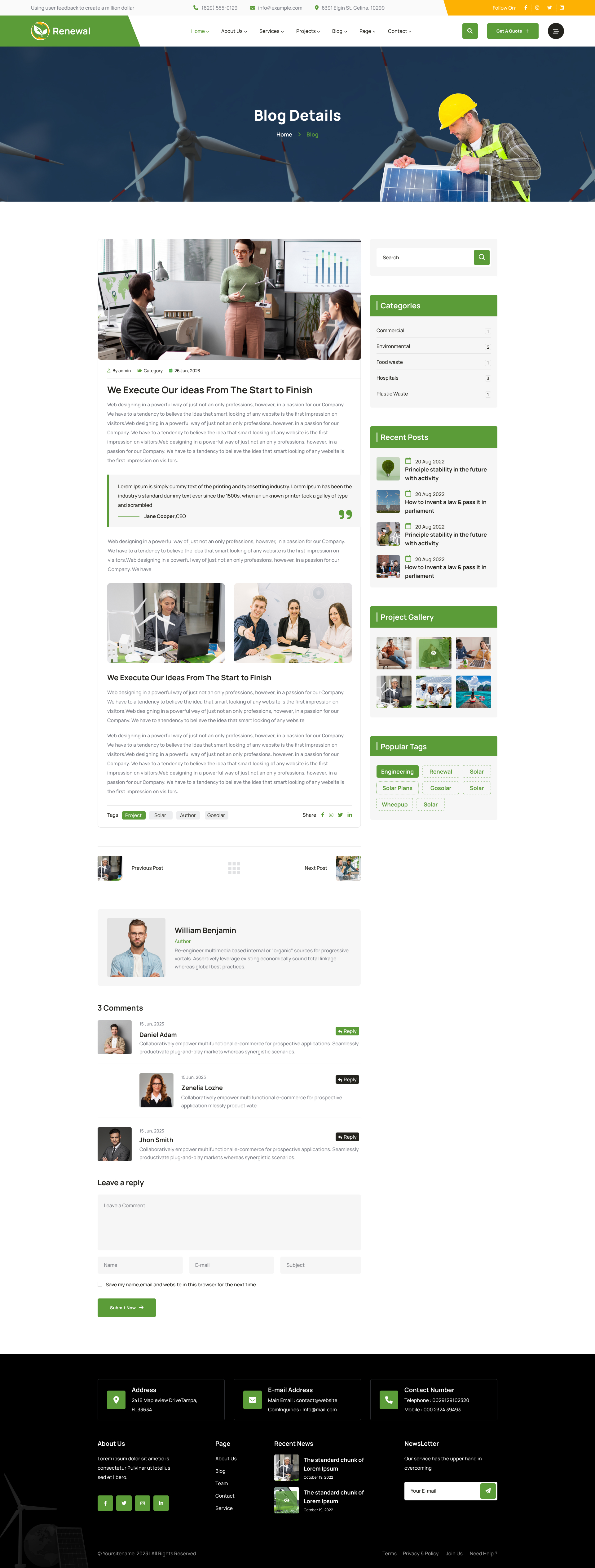 Renewal is a professional and informative Figma template that is suitable for creating solar, solar Renewal energy, solar panels, solar sustainable, and solar power constructions based service website. It comes with a creative and modern Figma design.
