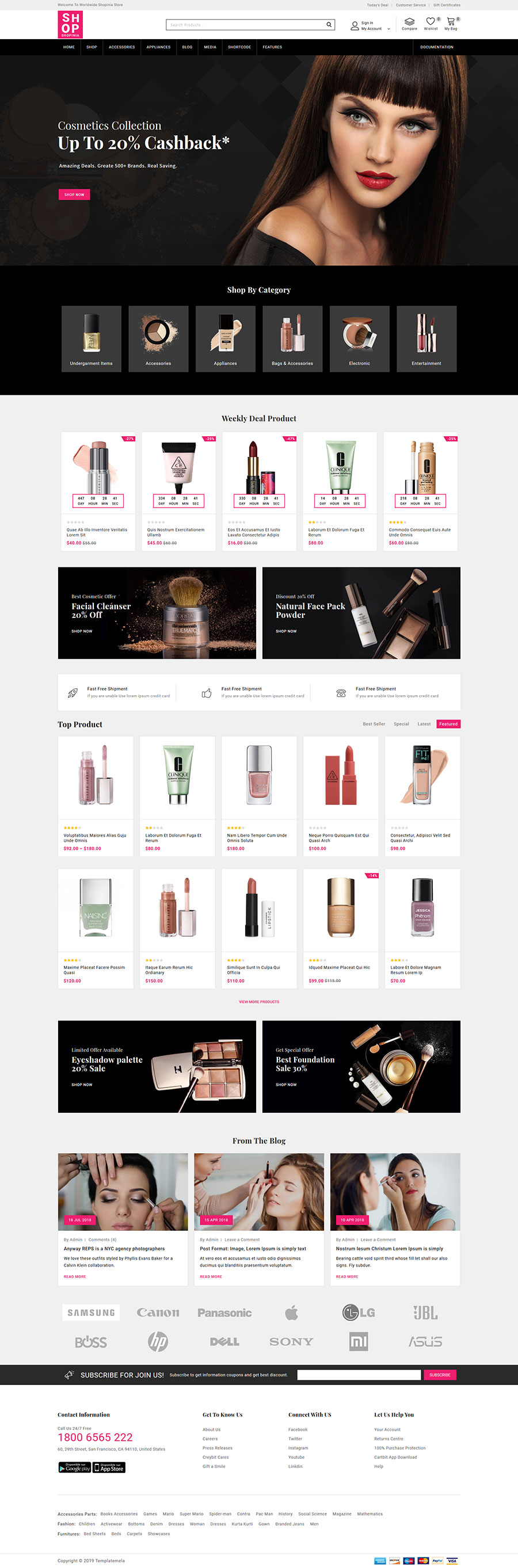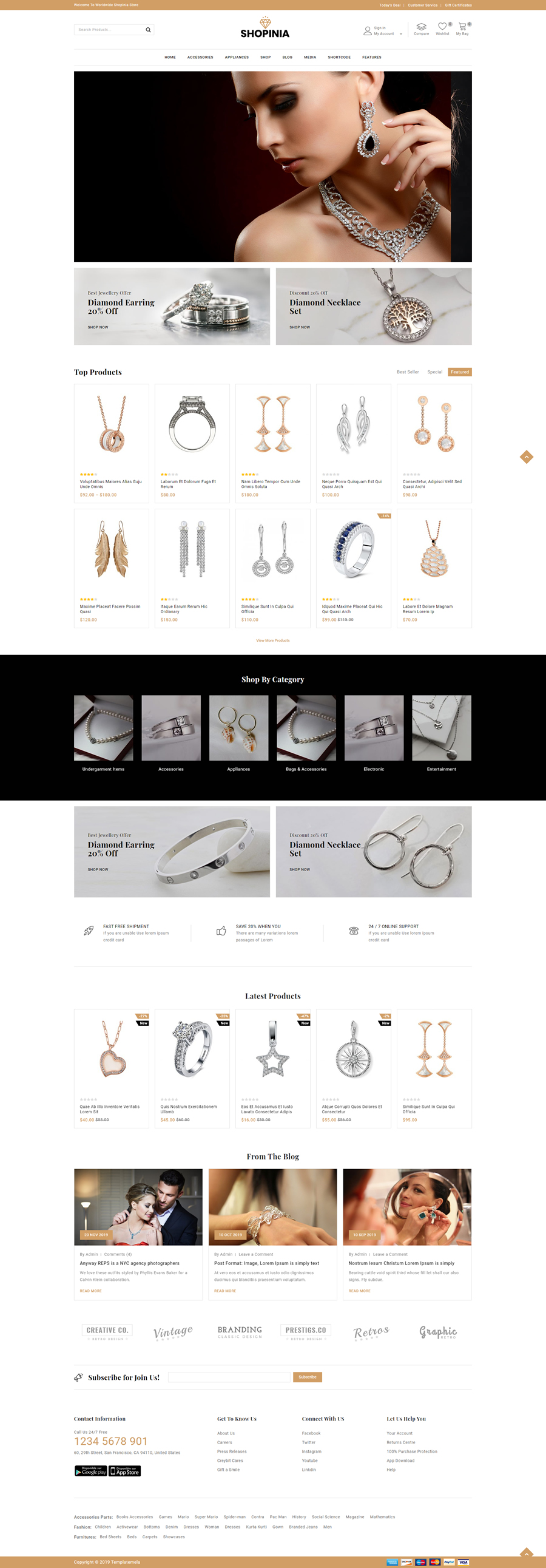 Shopinia is WordPress ecommerce theme based on WooCommerce plugin. It is suitable for electronics, tv, digital, mobile, food, vegetables, plant, garden tools, auto, fruits, kitchen, watches, accessories, furniture, art, ceramic, handicraft, decor, fashion, jewellery, lingerie, lighting and home accessories store. It is also multipurpose theme which can be used for any kind of online store. Shopinia WooCommerce theme is looking good with it’s clean and fresh design. All sub pages are customized.