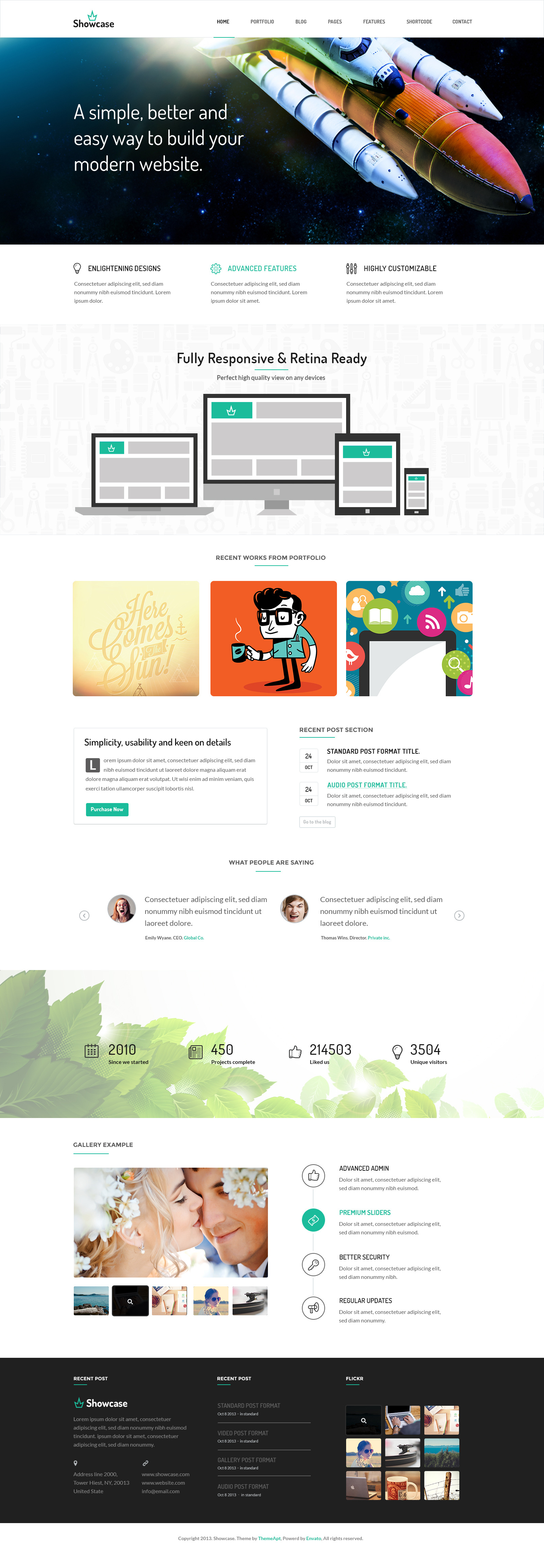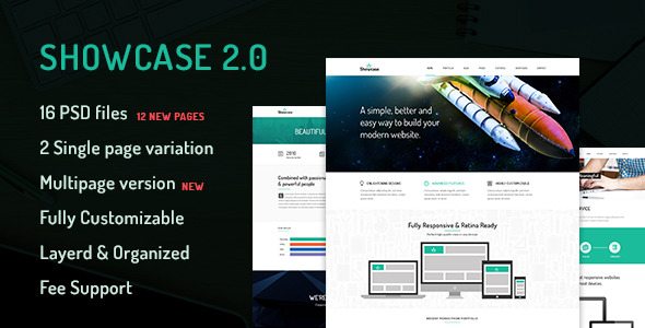 Showcase is a flat, minimalistic, professional & creative PSD Template for Freelancer Portfolio, Agency, Corporate business & so on. All PSD are well-organized(very nicely layered) so that very easy to modify & expand.