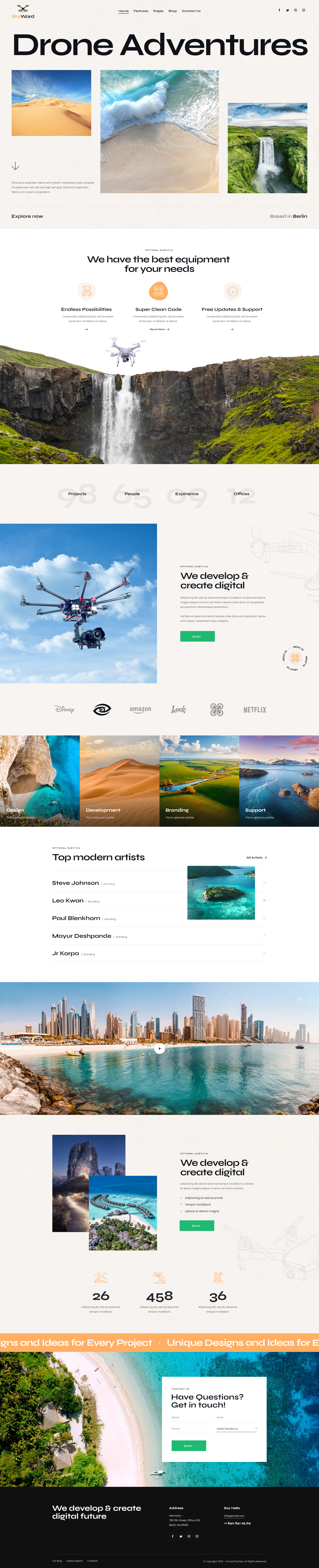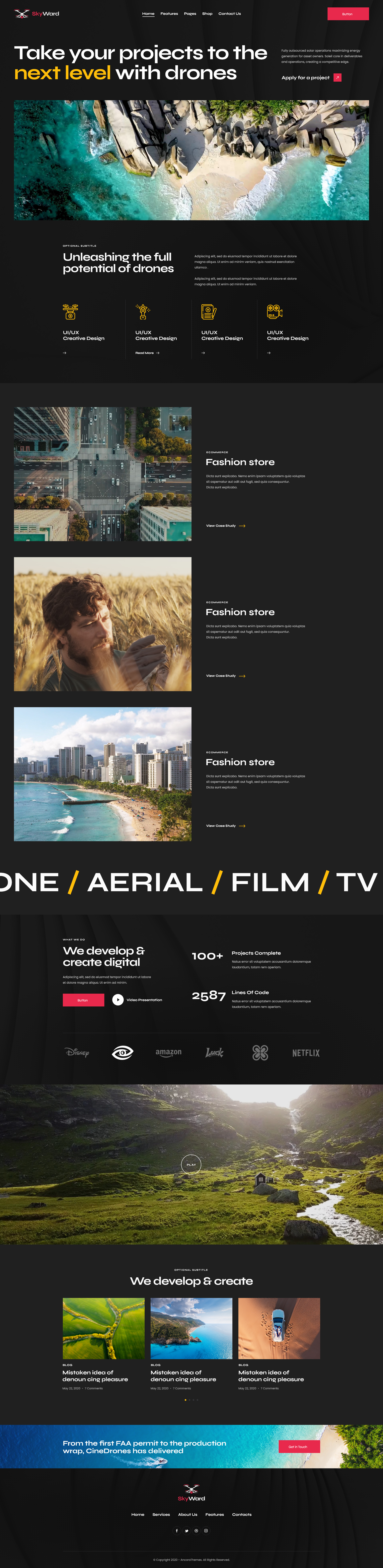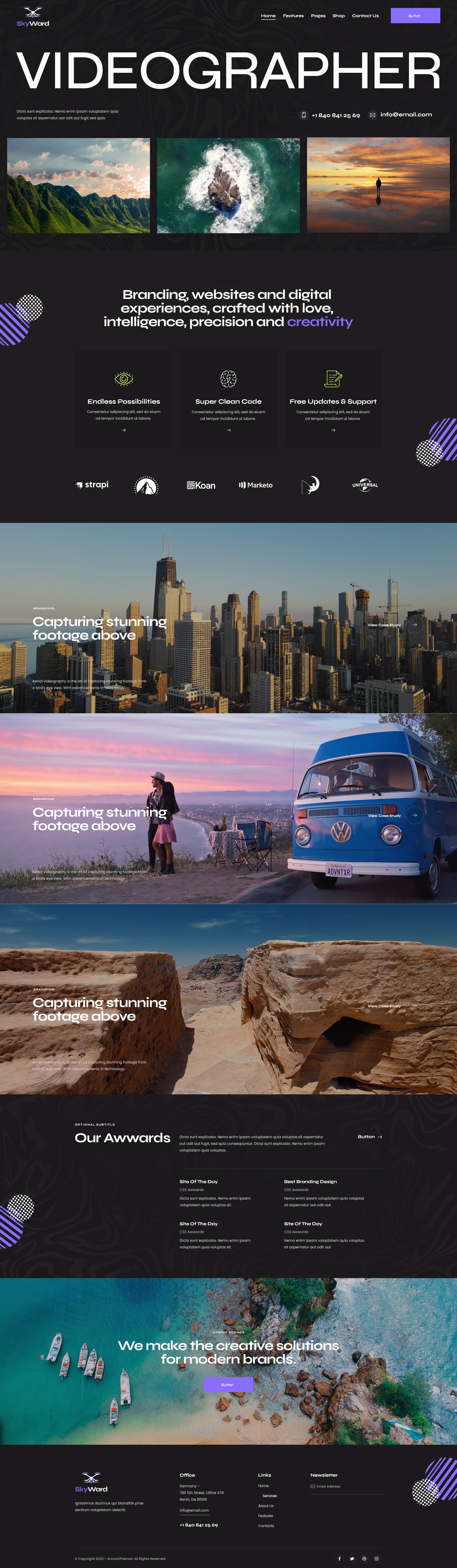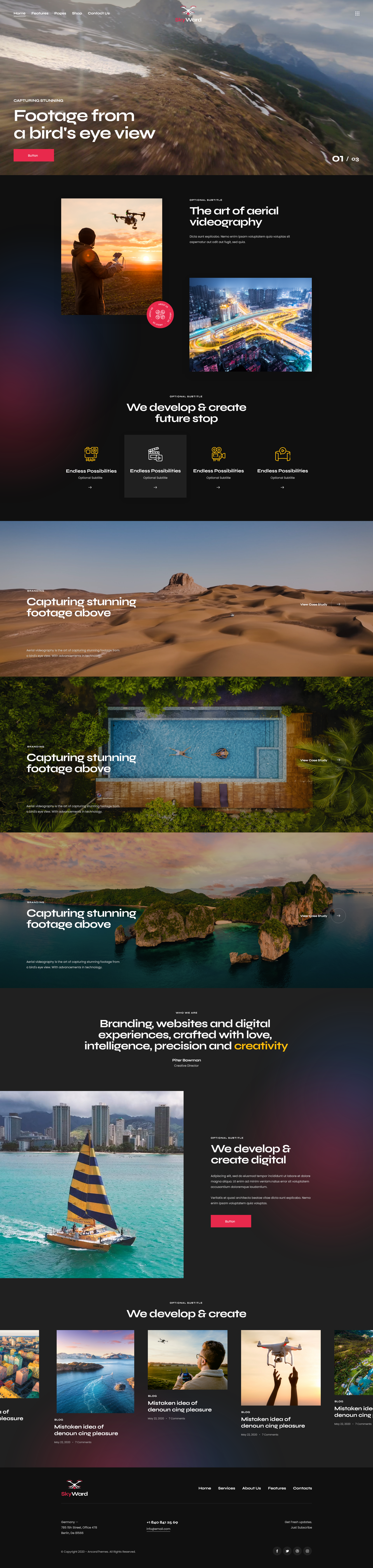 Skyward is a new, fresh, stylish & trendy WordPress theme. It is focused on aerial photography and videography. The design has modern touch and feel, and it offers full pack of options to describe your services and expose all your projects.