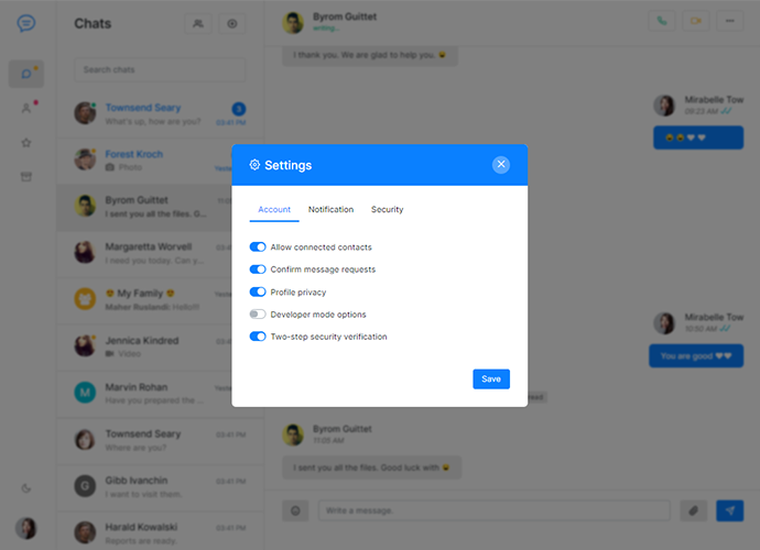 Slek allows you to create chat and discussion platforms. This template is functional and contains many features. You can create chat groups with other people, send and receive private messages and various digital documents (video, photos, files, audio). Compatible with all devices. We have components to meet all your needs. Built with Bootstrap 4 and includes SCSS support.
