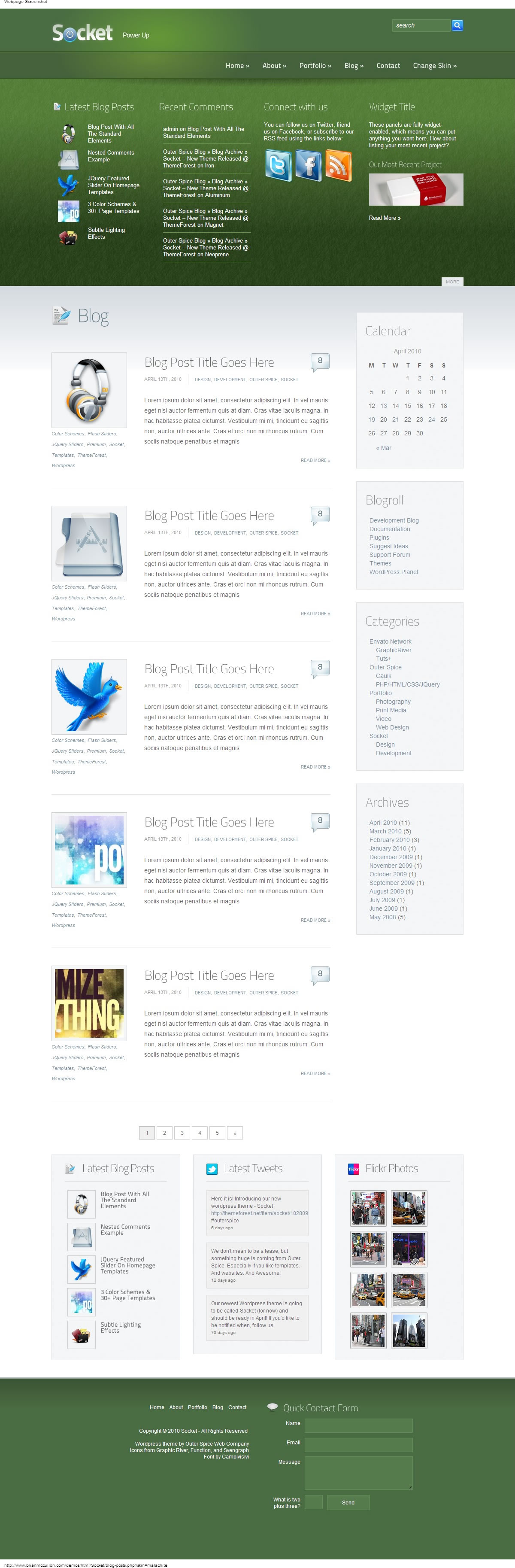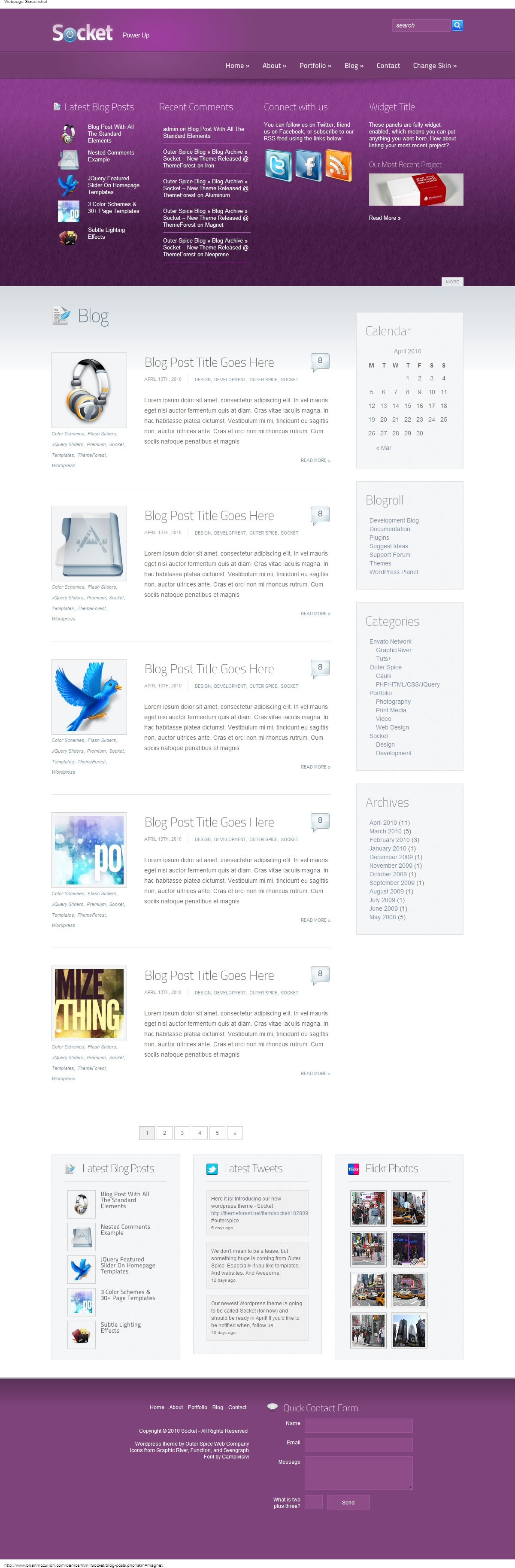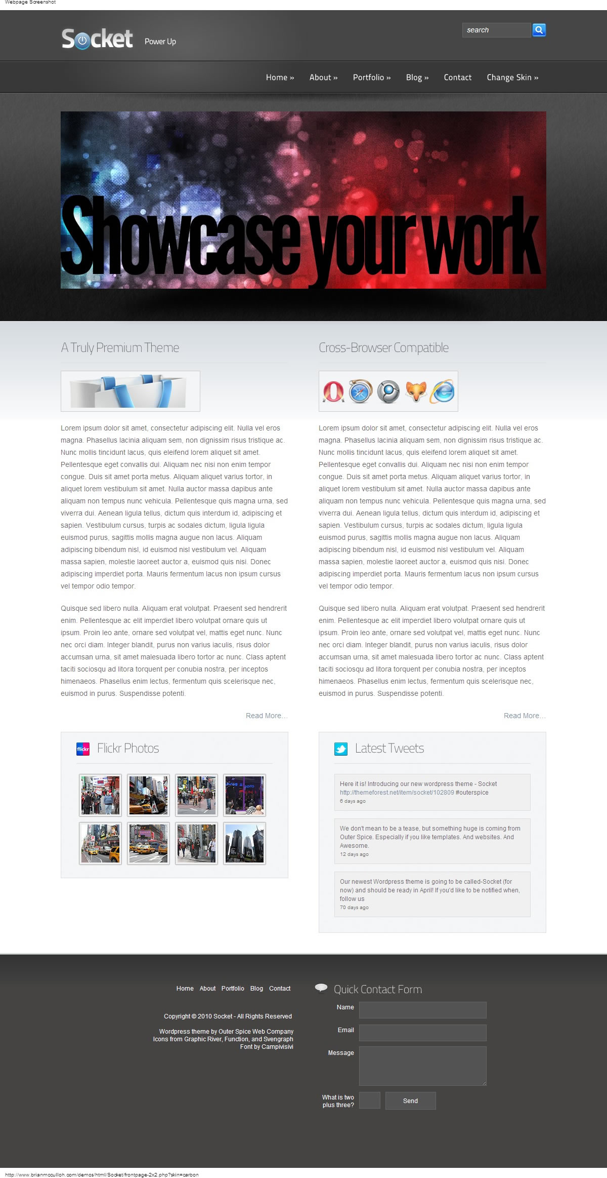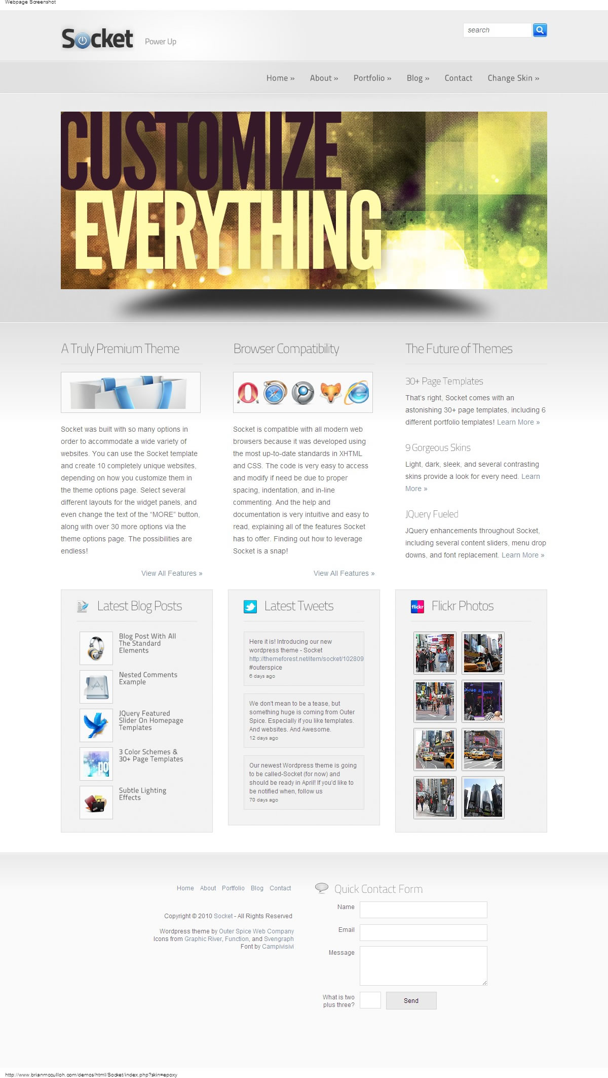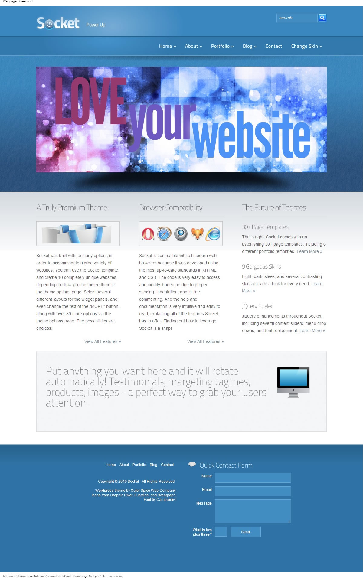 To really get a feel for everything Socket can do, check out the live demo and explore all the pages. The features are described on each page, and you can also see the different skins using the skin chooser. Here is a list of each skin with a link to see it in action: