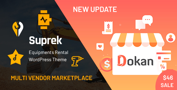 Build your online homepage with Suprek. With our rental theme you have no less than 4 predefined homepages for Construction or Multi Vendor Marketplace Equipment , Sport and Fitnes equipment and Events Equipments to choose from and even more layout options.