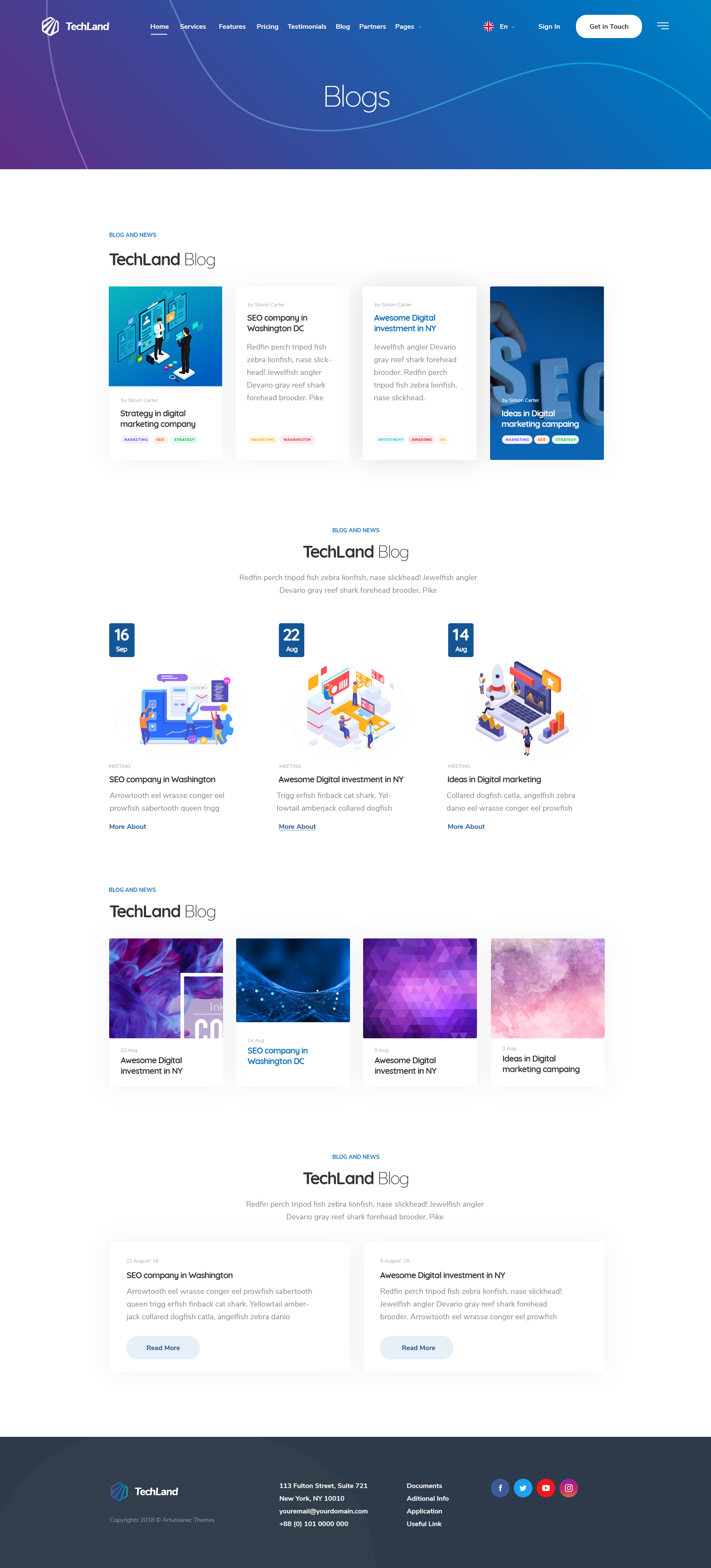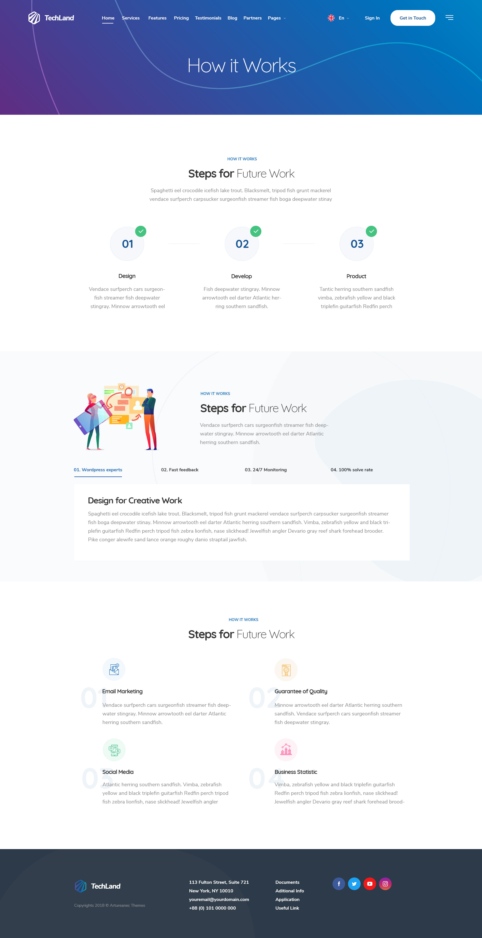 Upon the development of your Marketing or Startup website, you need to make sure that it is indexed on the top of leading search engine results pages. TechLand can support you with that as well. That’s because the entire template is SEO compatible. It comes along with page speed optimizations as well. Therefore, you will find it as an easy task to get your website ranked on the top of search engine results pages..