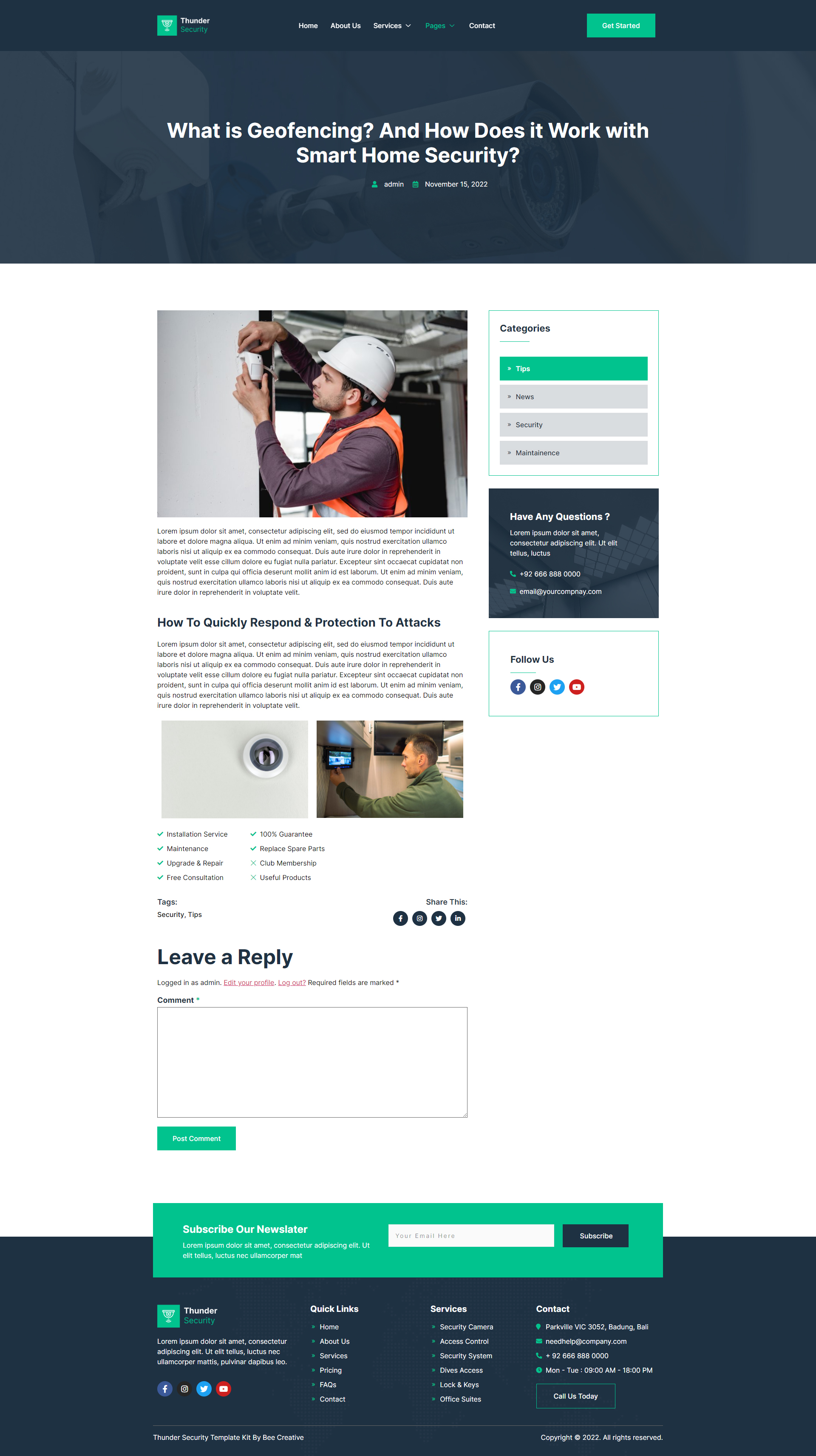 Thunder Security is a modern CCTV & Security Elementor Template Kit that perfect for creating a website for CCTV, Security Camera, Home Security, Security Firms, Security Systems, and Security Service. This template has a beautiful and unique design with a 100% responsive layout, retina-ready, and easy to customize.