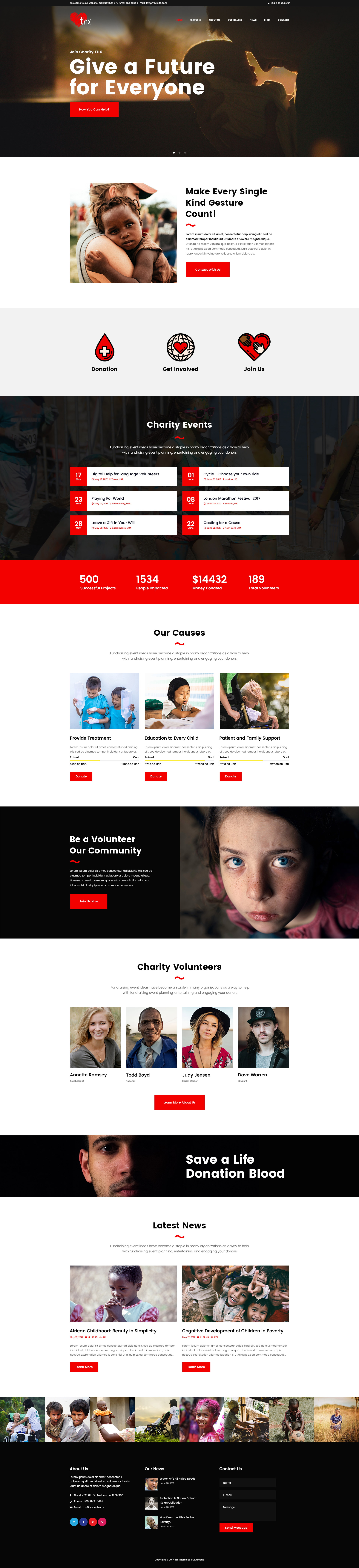 THX – Charity & donation PSD Template. Useful template and web elements for charity, donation and ecology campaigns. Modern colors, practical layout and simple forms. Free font Poppins from Google Fonts. Each PSD file is well organized.