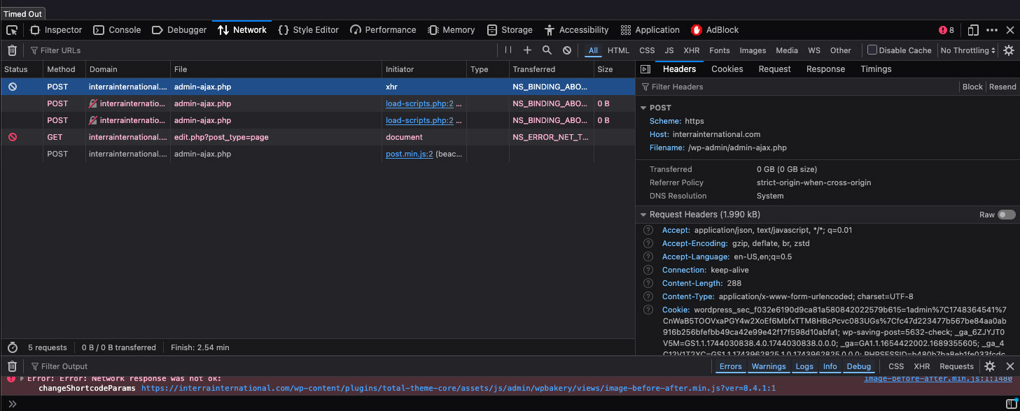 I have the following issue with editing pages in WPBakery Page Builder on one of my sites.