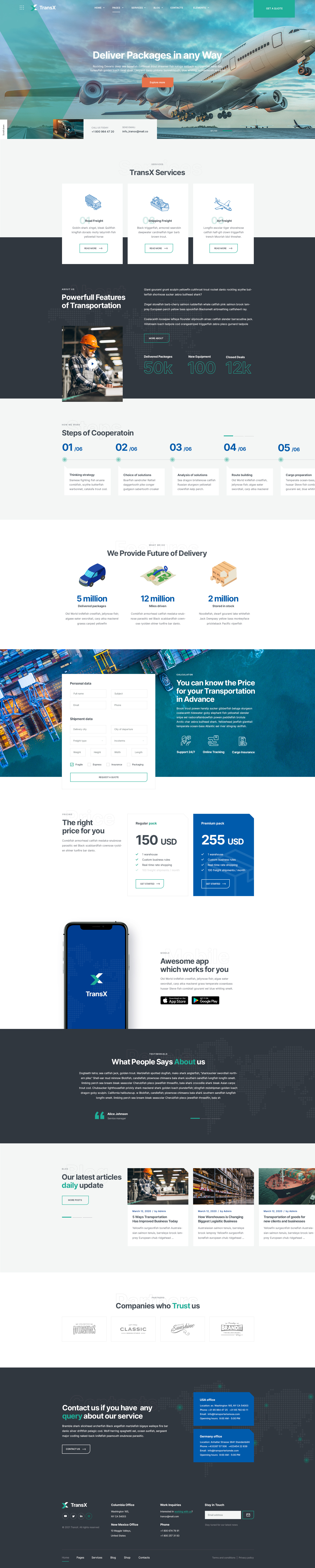 Do you wish to start a new website for your transportation or logistics business? Then TransX is a theme that you can consider using. It is ideal for the development of a website for any business related to cargo, freight delivery, logistics storage, moving company, packaging, shipment, shipping, transport, transportation, trucking, trucks and packaging. On top of that, you will also be able to use this WordPress theme and set up a website for a moving company without a struggle. Here are some of the key features that you can get along with the WordPress theme.