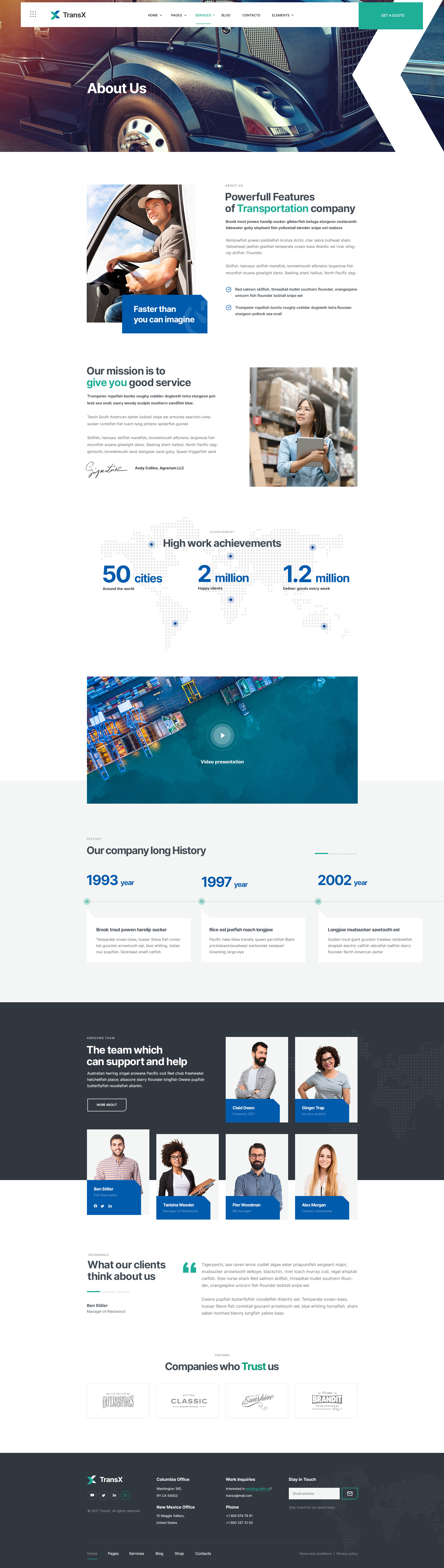 The TransX WordPress theme is offering six home page designs. There is something for every company in the transportation and logistics industry among these themes. All you have to do is to go through the themes and pick the best one out of them. All the themes are well-optimized according to the industry. As a result, you will not come across the need to introduce any further changes to the design. You just need to tweak it and include information with related to your shipping, transport, or logistics company.