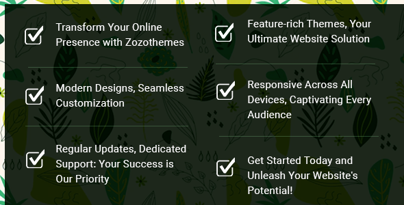 These are just some of the potential benefits of using Zozothemes products, which can help you create a professional, responsive, and feature-rich website for your business or personal use.