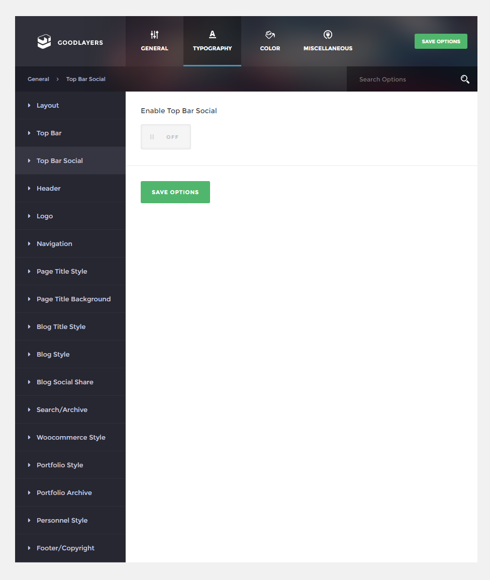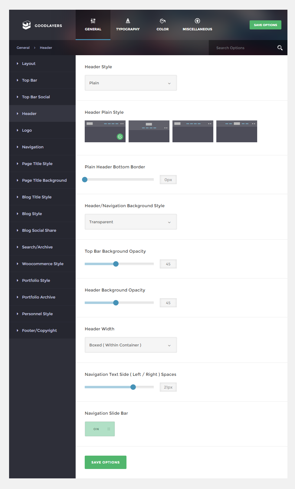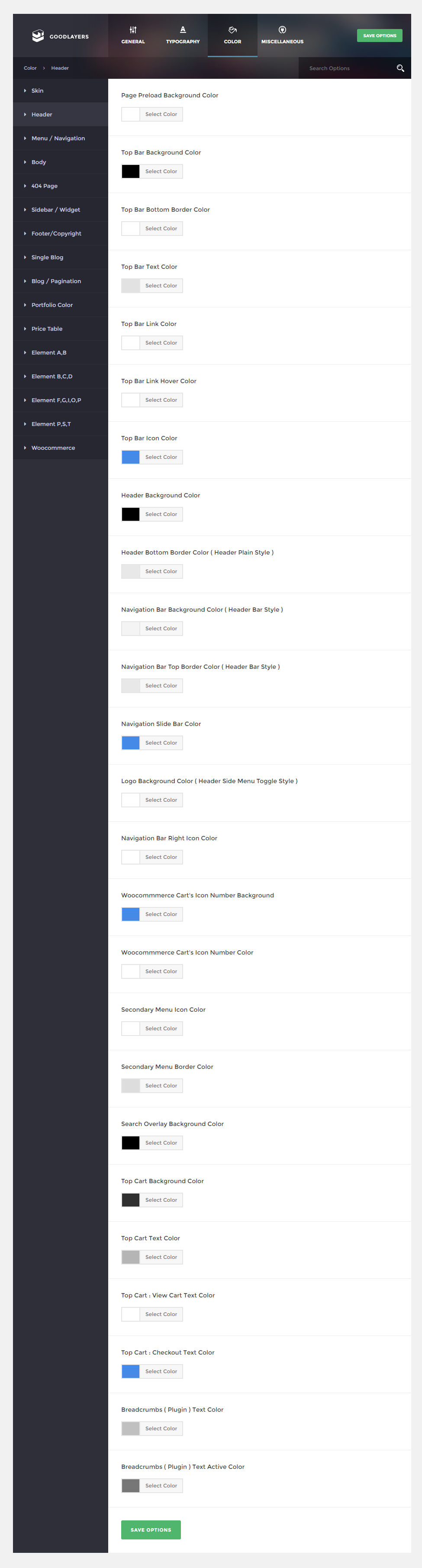 - Top Bar – You can choose to enable top bar on top of all headers styles
