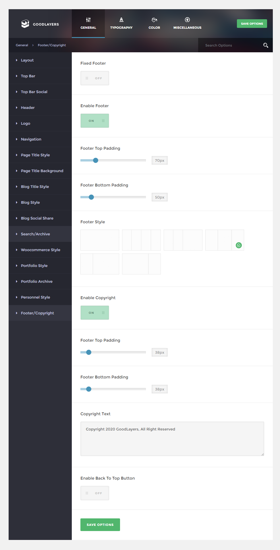 - 6 Footer Layouts – You will also have option to disable footer/copyright section in specific pages too.