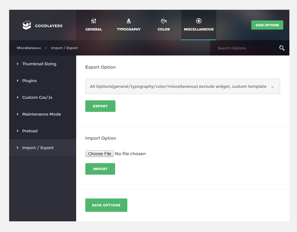 - Import / Export – Ability to import and export theme options, widget, custom page template easily.