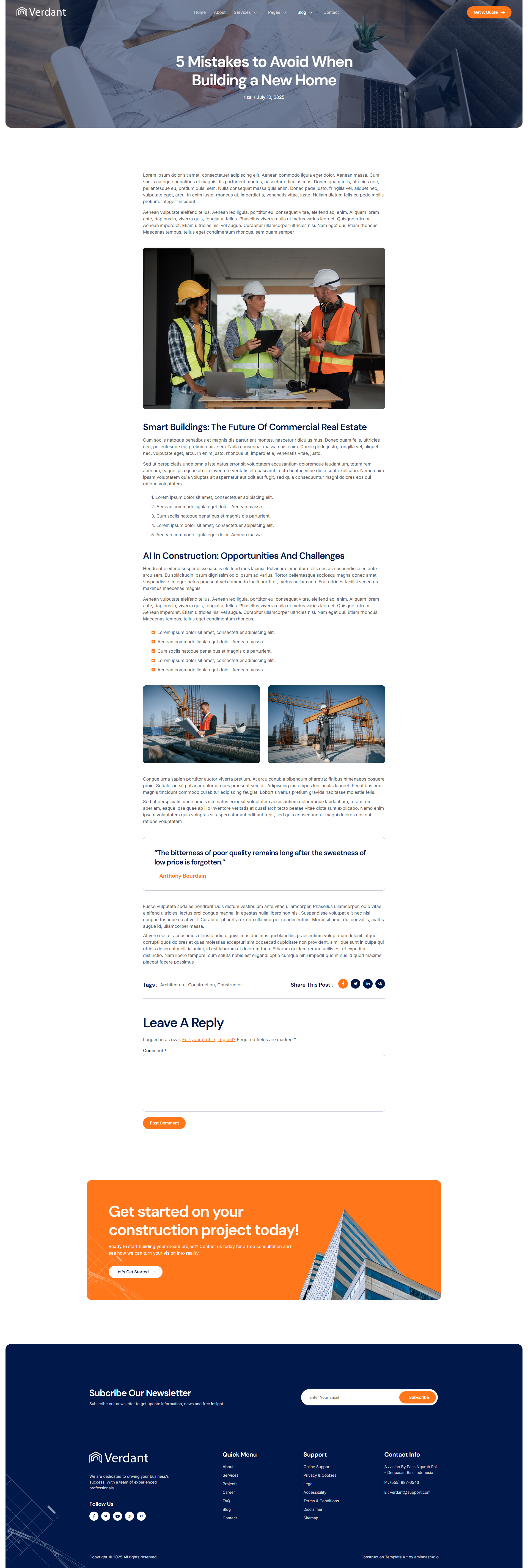 Verdant – Is a modern and professional Elementor Template Kit that is perfect for those who want to create a professional looking website for construction companies, contractors, and building services Company . This kit has a professional design, modern style and unique design with a 100% responsive layout, retina-ready and very easy to customize as it uses Elementor so you don’t need a single line of code!