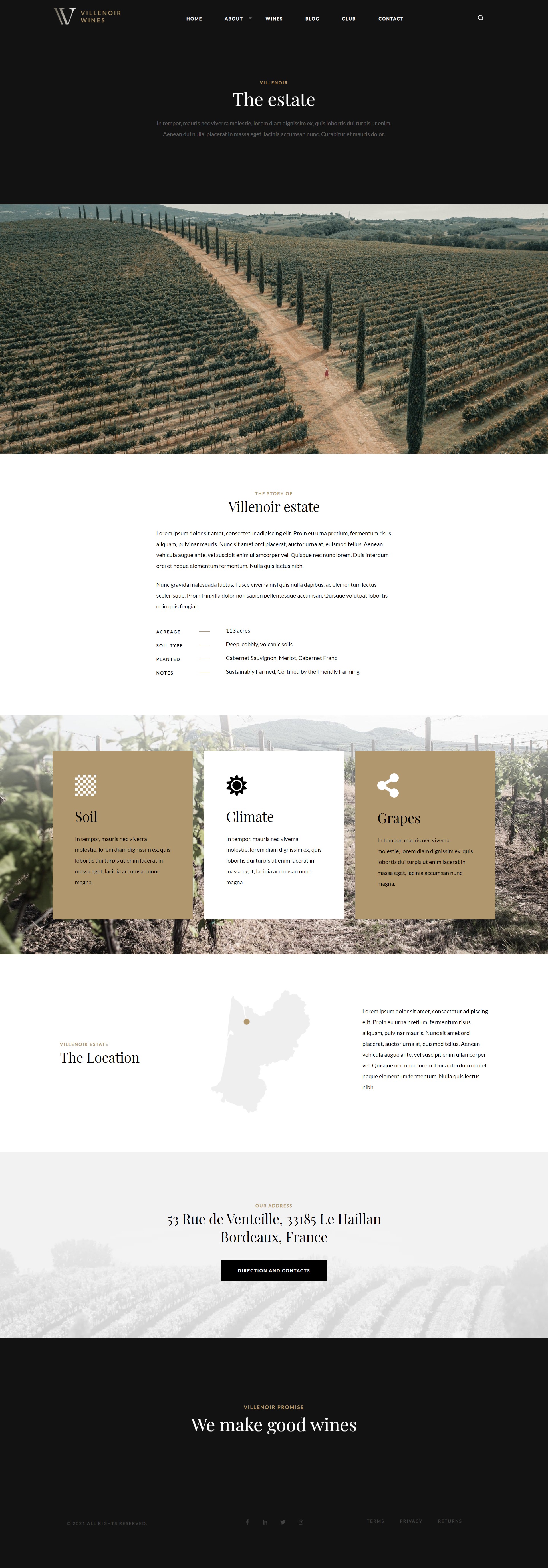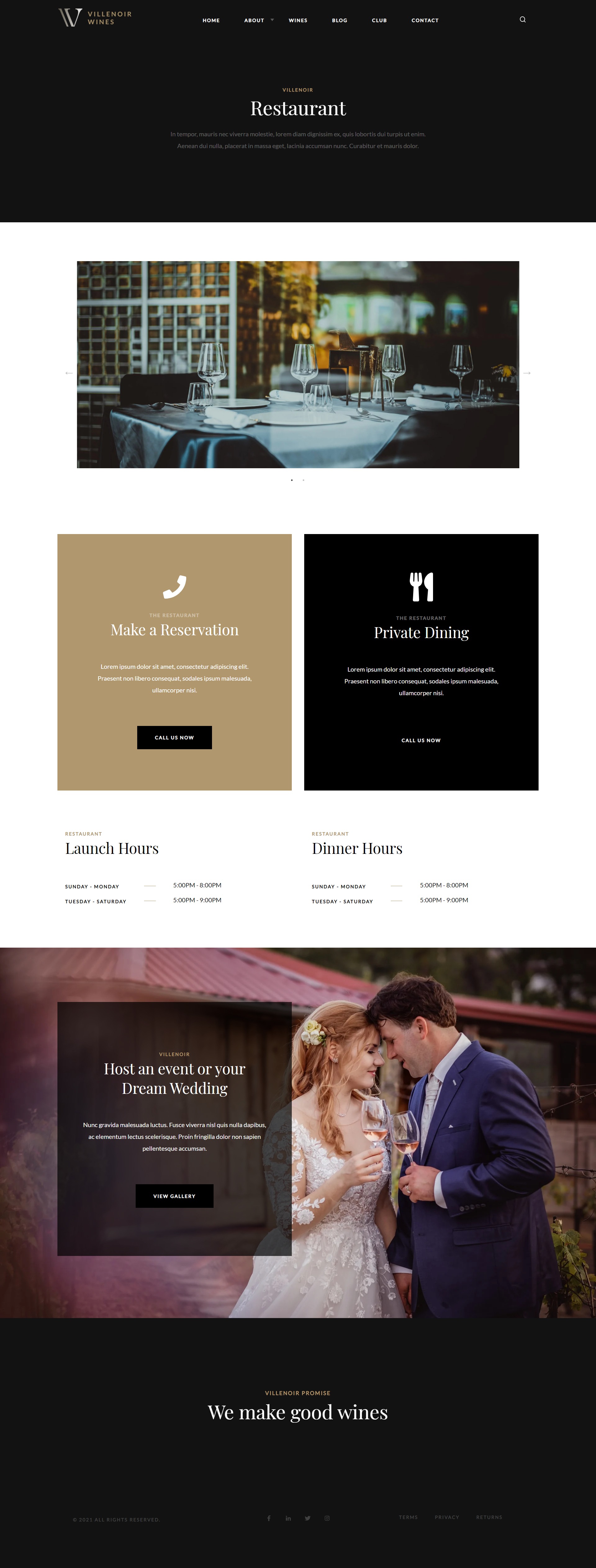 Built for wineries and vineyards alike, with a classy feel and a multitude of business specific elements, Villenoir is the perfect theme to improve your online presence.