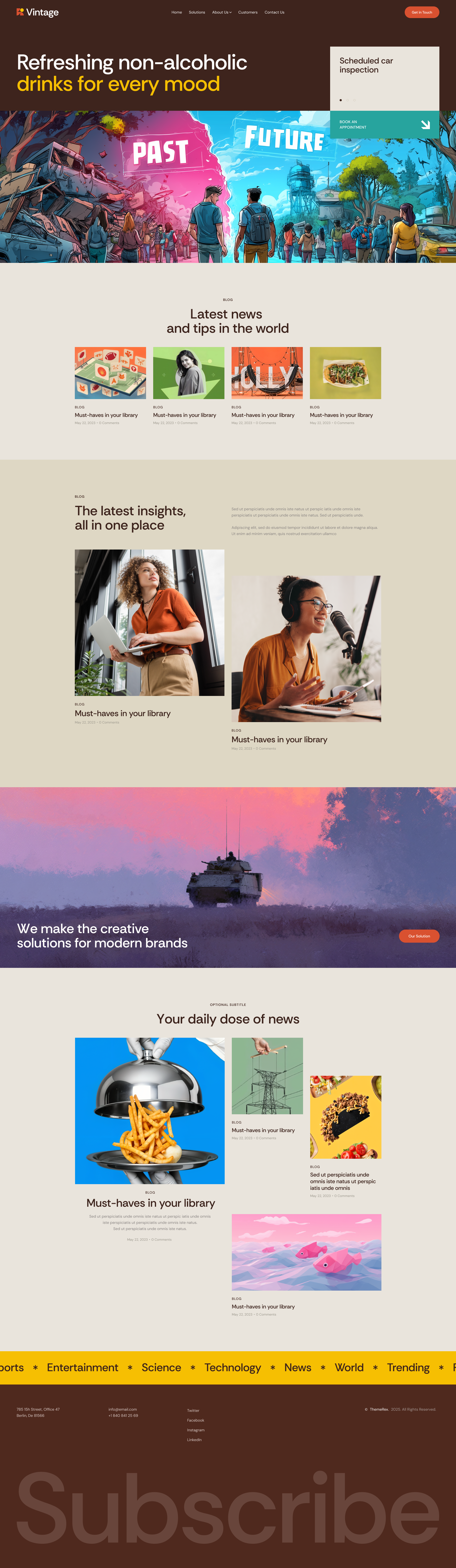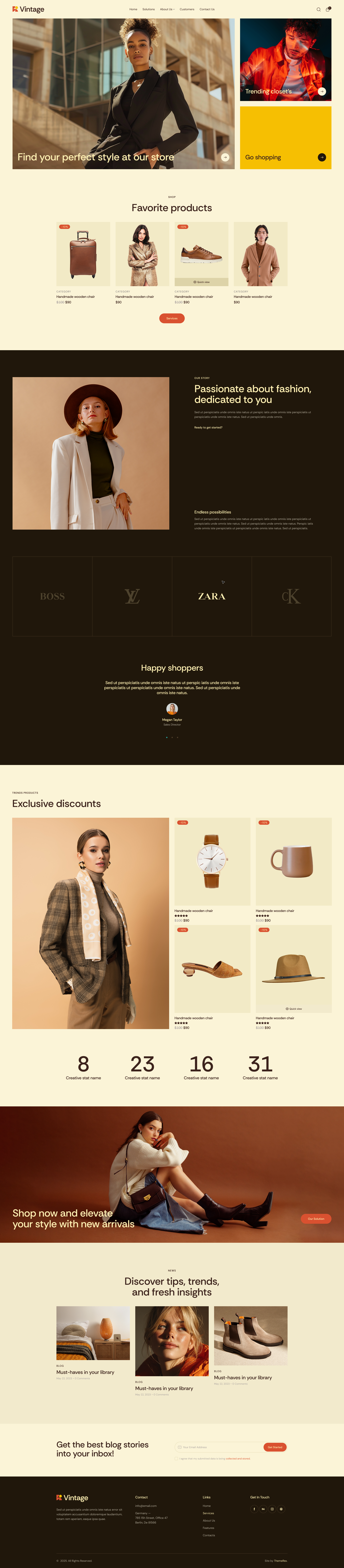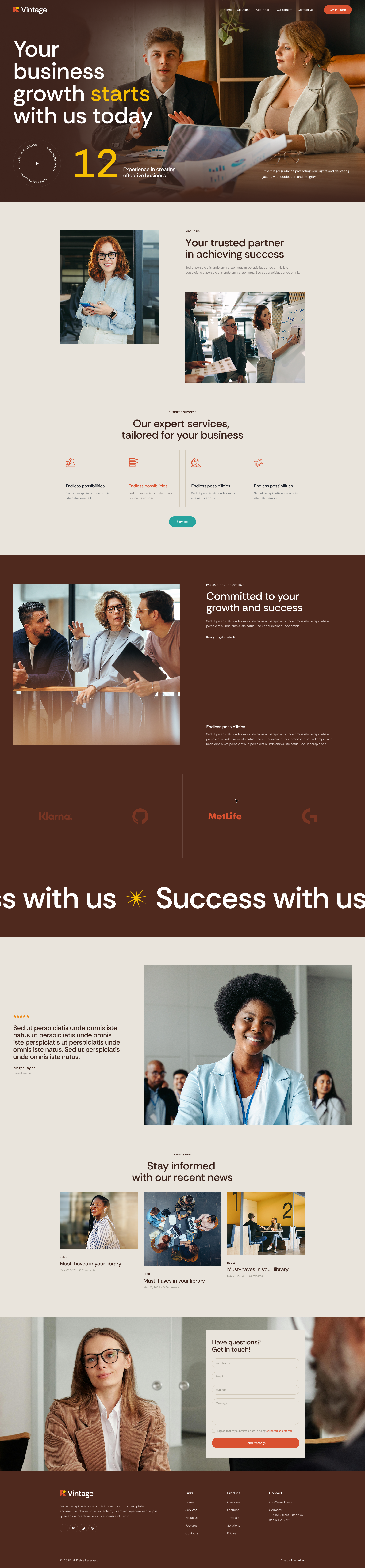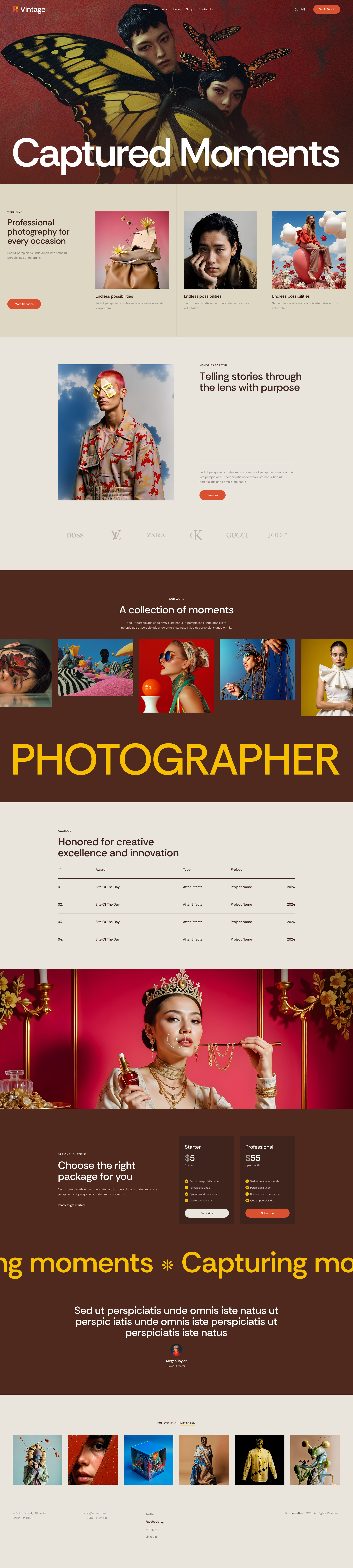 Vintage will work well for marketing bureau, law, design , photography blog, full service organization, corporate b2b business, web designer portfolio, digital & graphic design. Above all it is good for project management, entrepreneur, UI/UX Design, entrepreneur, freelancer and startup company, events planning services, public relations, mobile, copywriting, PPC, SEM, social media, SMM, branding development, strategy.