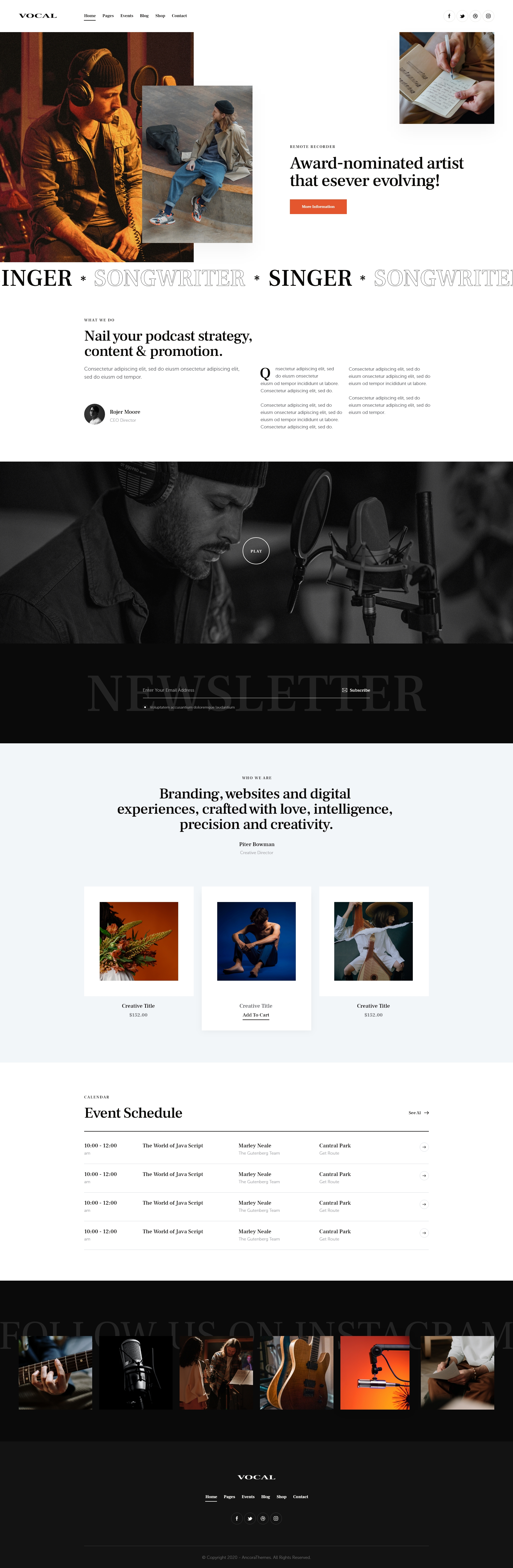 Vocal has modern and functional attractive design. It is crafted for a contemporary singing, voice artist, voice-over, school of arts, music school, singing classes, voice training, art classes for children, fresh art studio, oiceover, and any creative community agency, blog, store, shop etc.
