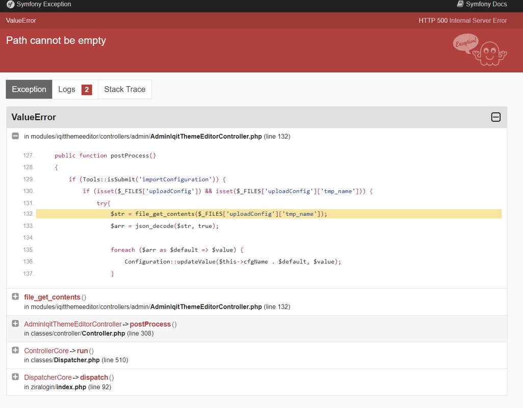 Despite we are able to access to the Prestashop Control Panel on debug mode, the site is unable to reach due an error related with the IqitThemeEditor