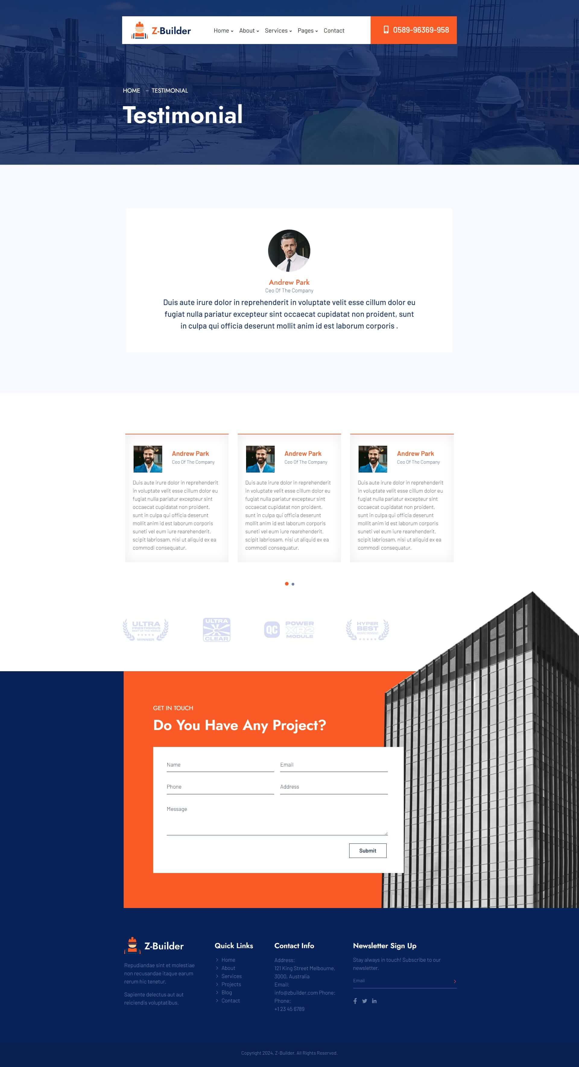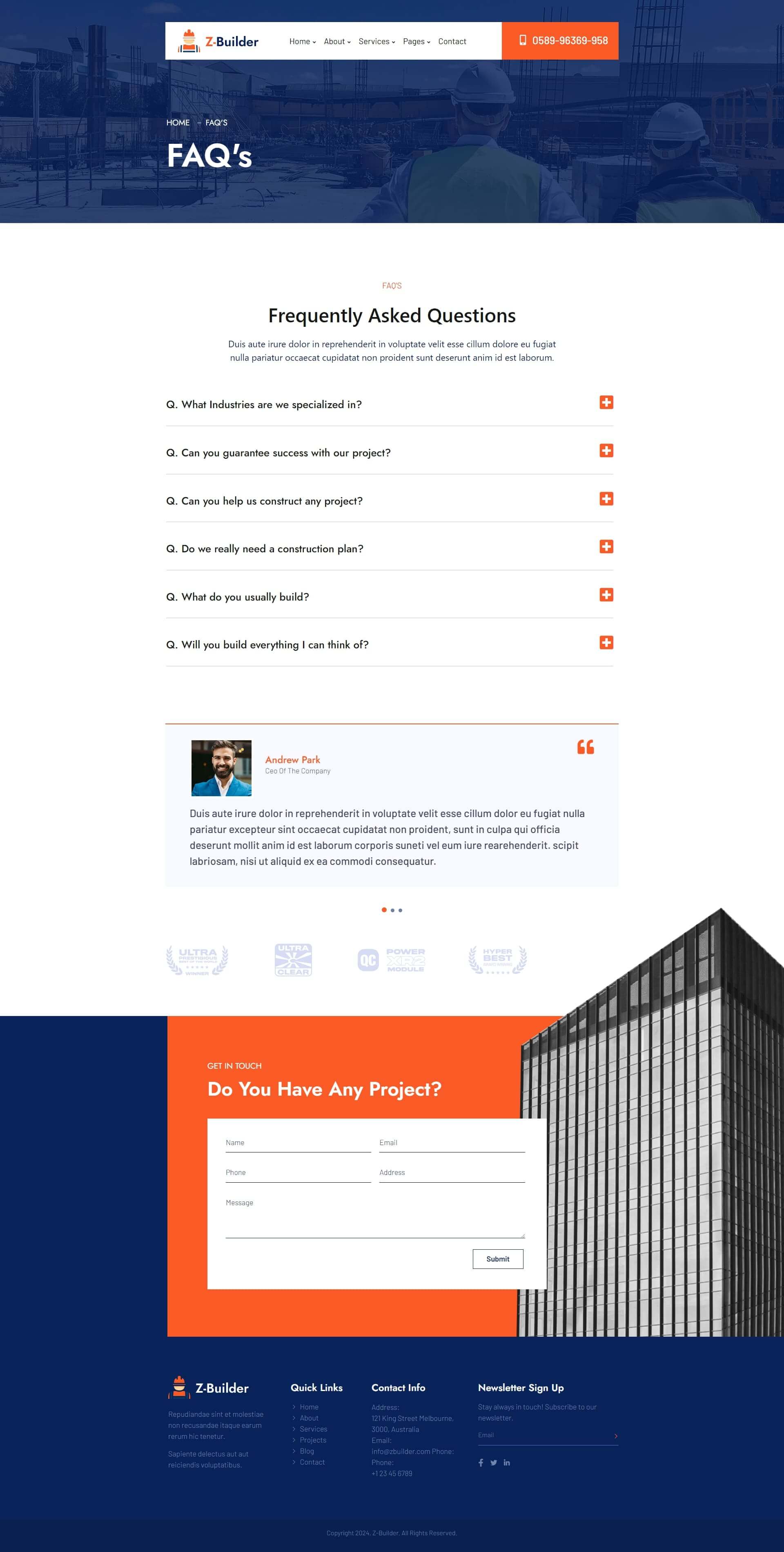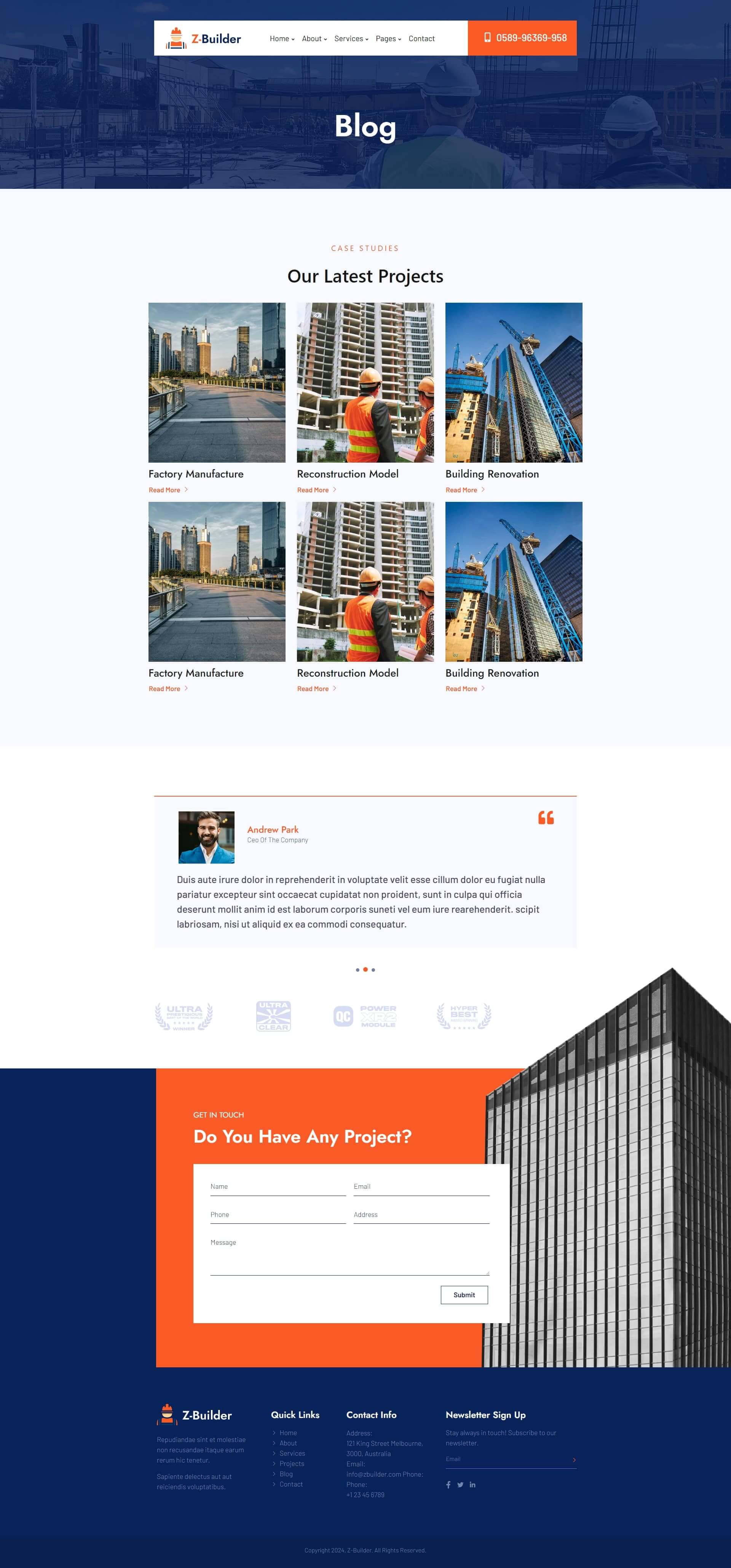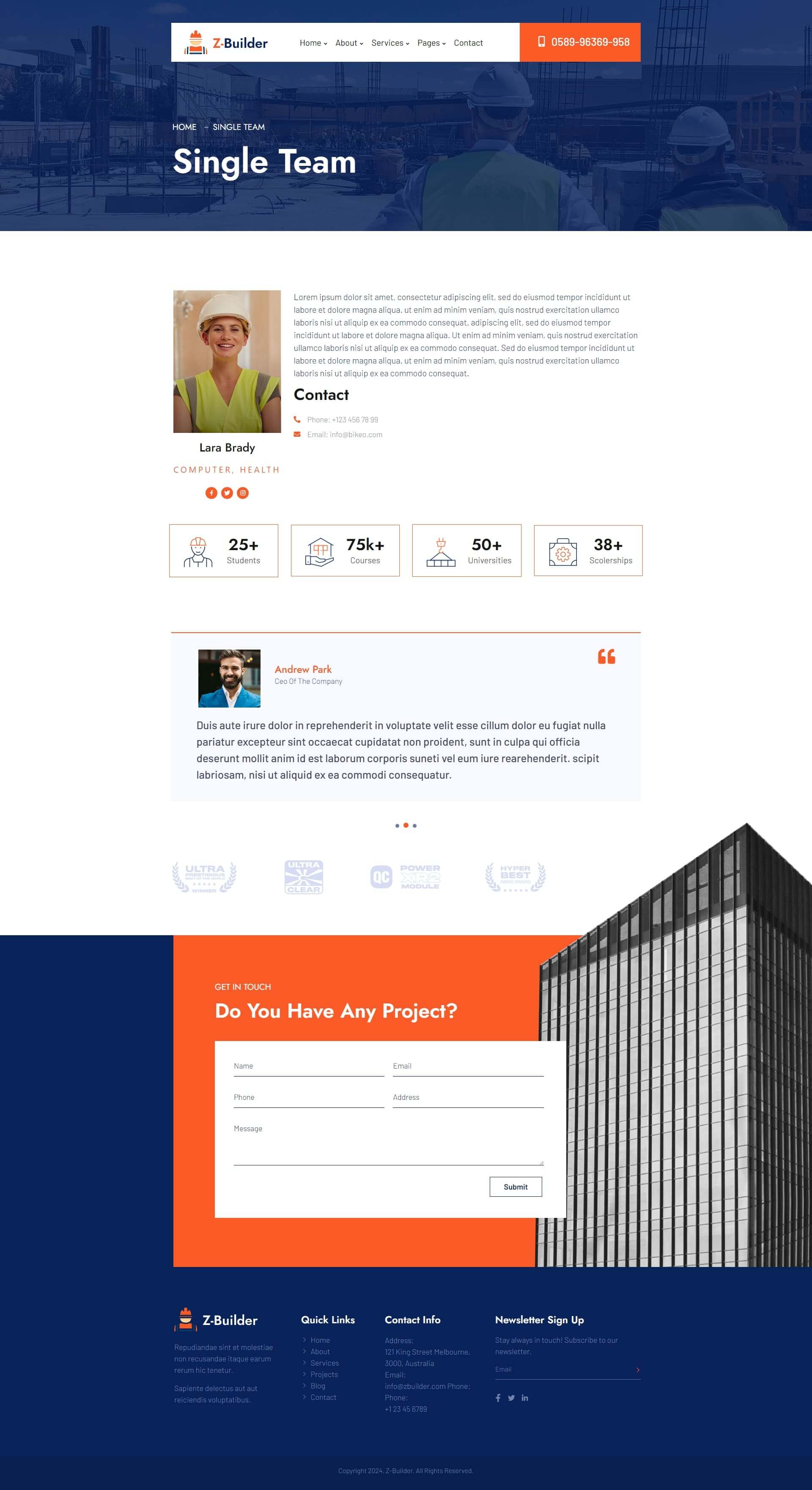 Z-Builder is an Elementor Template Kit for designing construction, builder or related websites in WordPress. Using Z-Builder for your project will ensure design consistency and provide immense room for future scalability, to better integrate innovative and interactive customer engagement strategies.