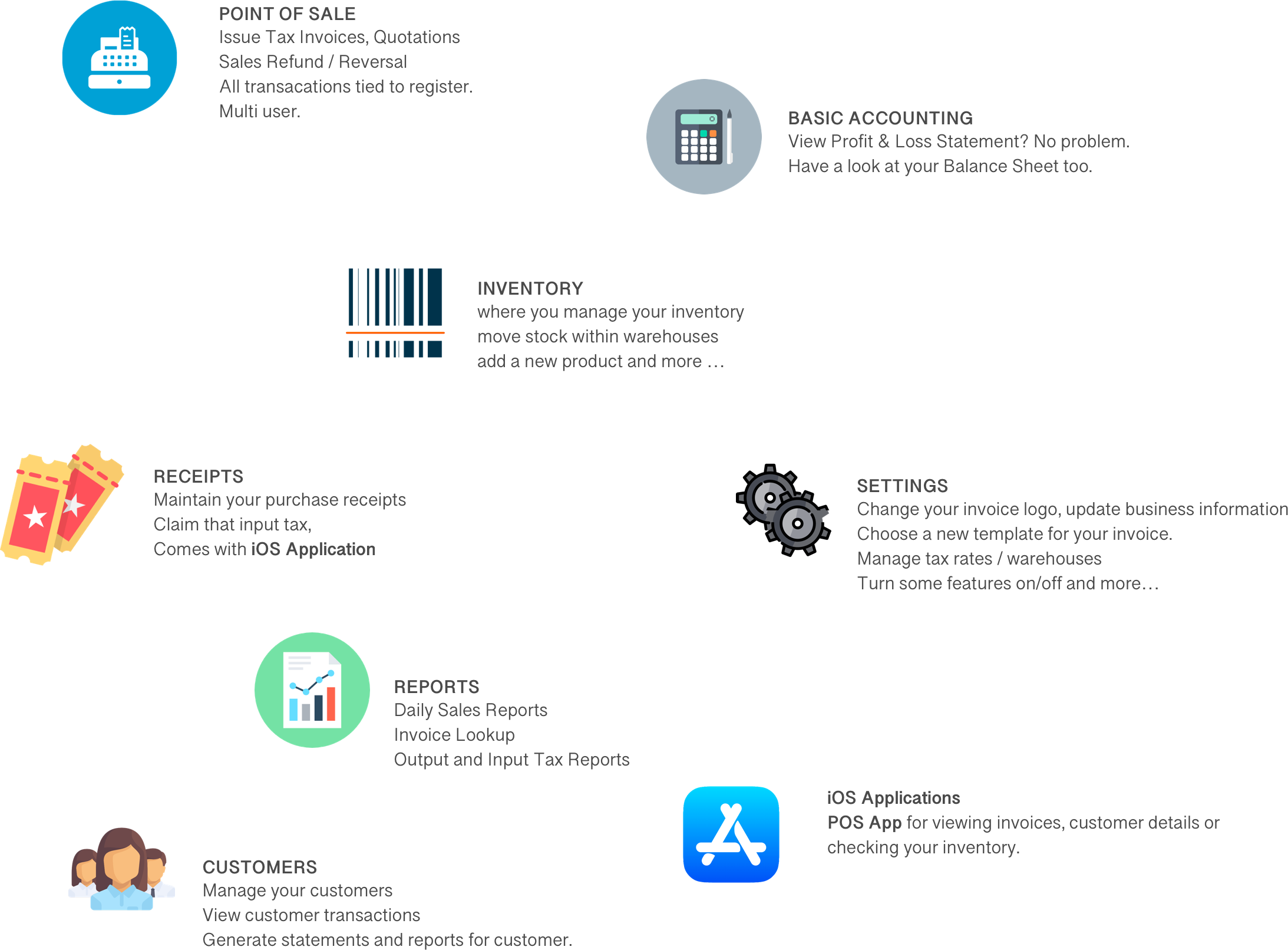 - Cash register feature – all of the sales done by a single user is recorded in his cash register, hence supporting multiple cashiers in shops.