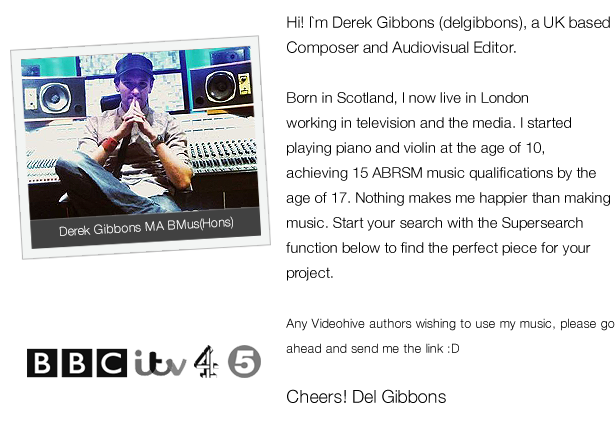 “Derek’s music combines originality with consistently high quality. He is fast, has a great understanding of the project and is extremely user friendly!”