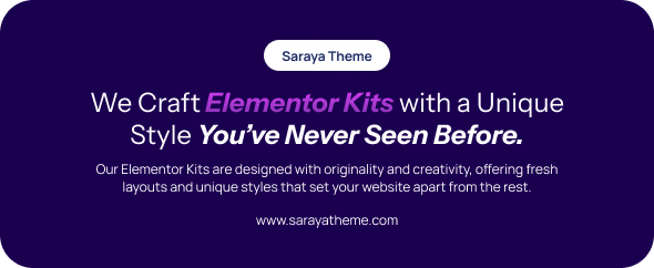 Saraya Theme is your trusted online creative agency specializing in building modern, fast, and stylish websites. We create Elementor Kits that are ready to use and perfectly designed for businesses of all kinds.