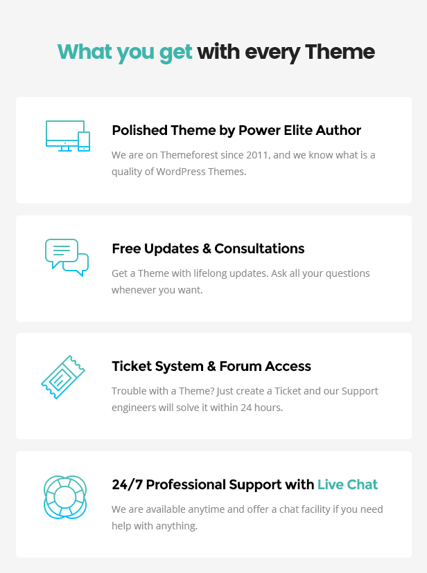 We specialize in creating awesome WordPress themes with custom design and flexible admin panel. We know that everyone deserves high quality services – no matter if you own a small private business or a large corporation, you must receive the service on the top level. We make your life easier by providing flexible solutions.