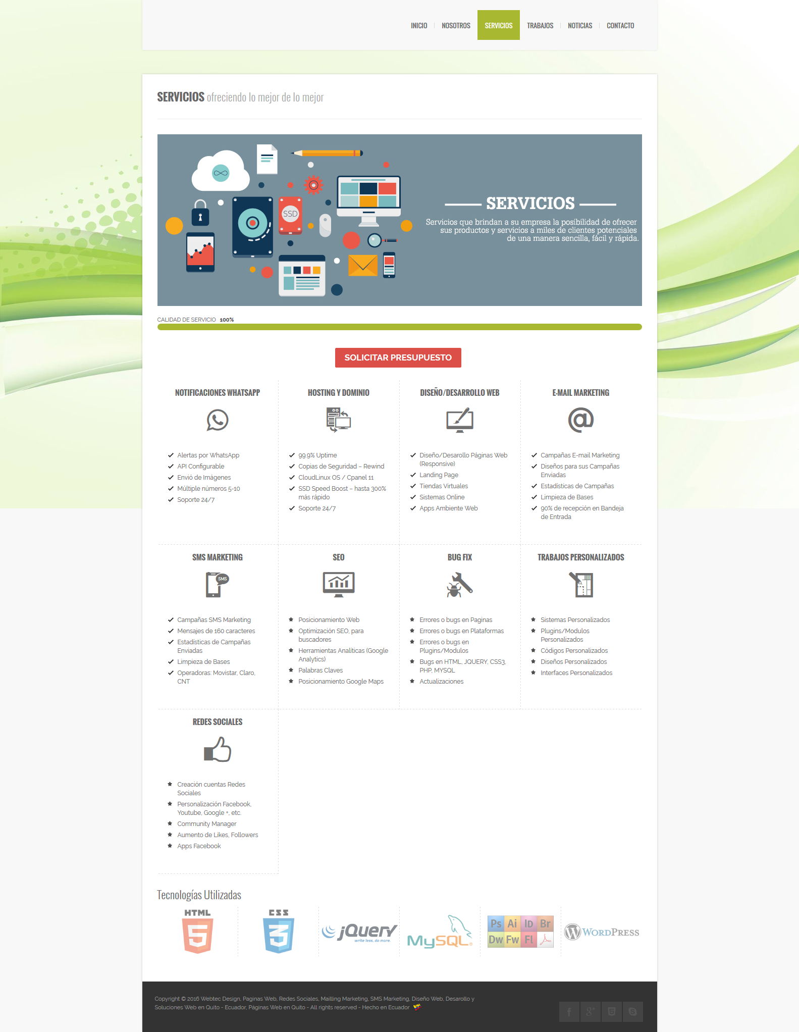 WebTec Design OFRECE SOLUCIONES mediante el desarrollo y creatividad de páginas Web ajustadas a los objetivos y valores del cliente.